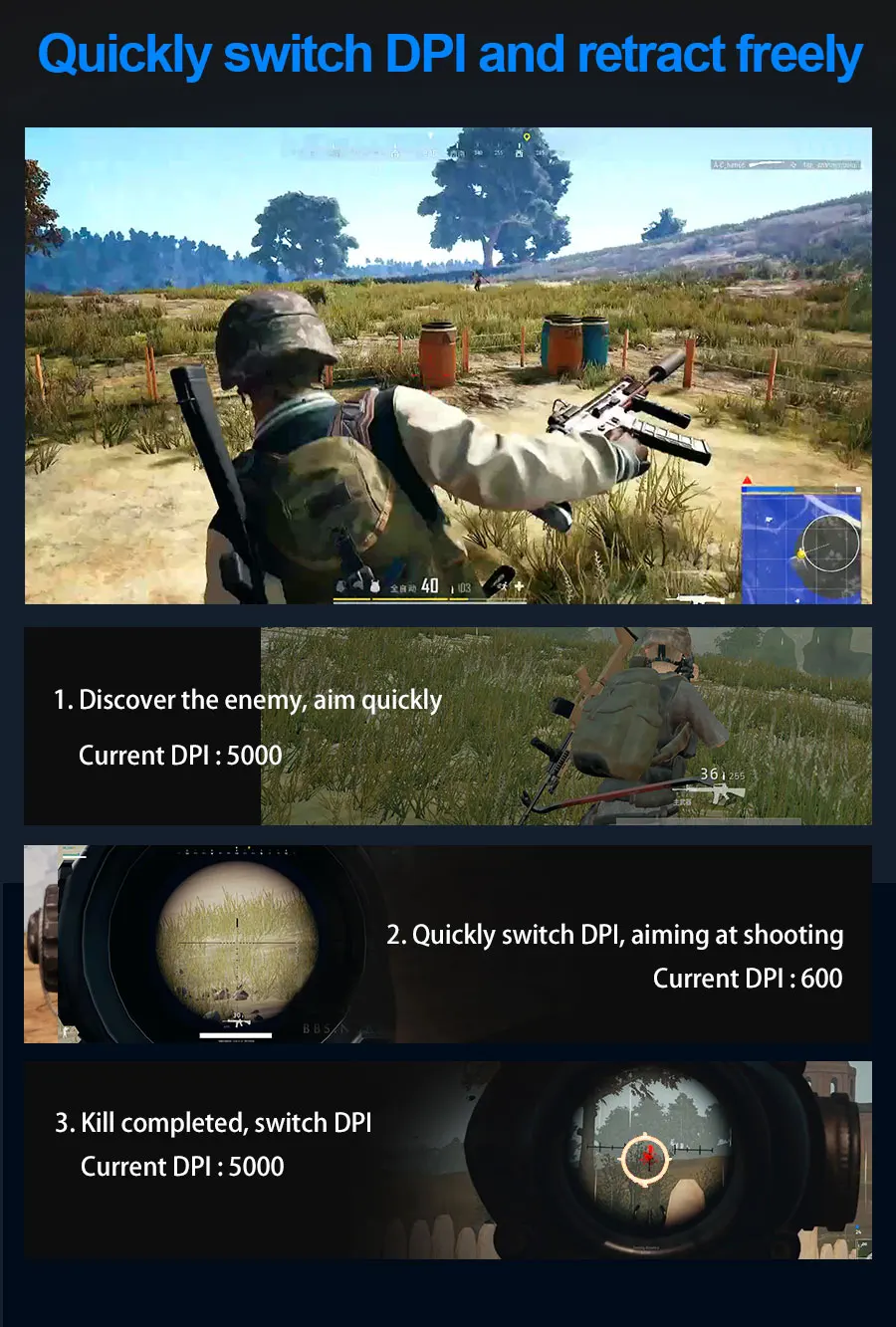 Чип обеспечивает 200 ~ 12400dpi DPI (пользовательский регулируемый)