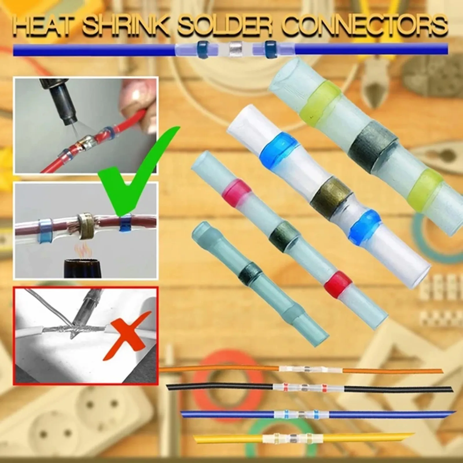 Термоусадочные соединители для проводов, электрические обжимные соединители для стыковых труб, водонепроницаемый комплект клемм для сращивания кабеля