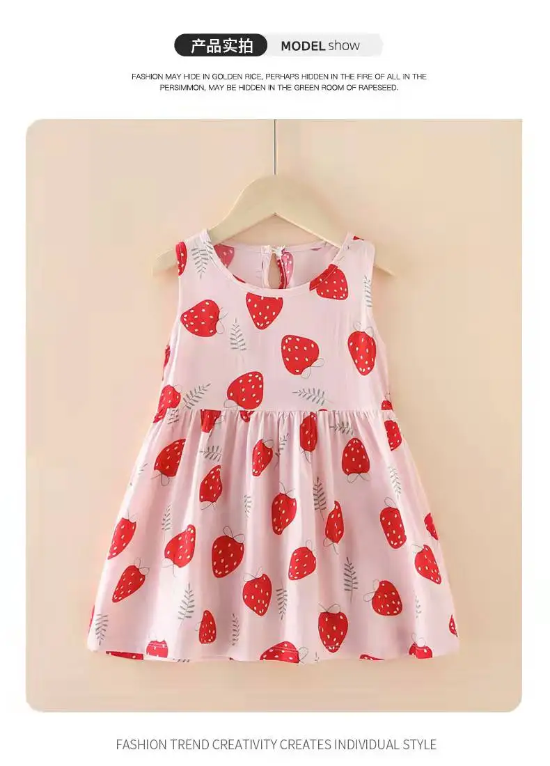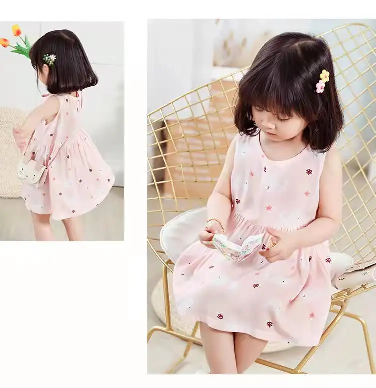 2022 Симпатичный жилет, хлопковое детское платье для маленьких девочек, хлопковые платья-трапеции без рукавов, повседневная одежда, мини-принцесса