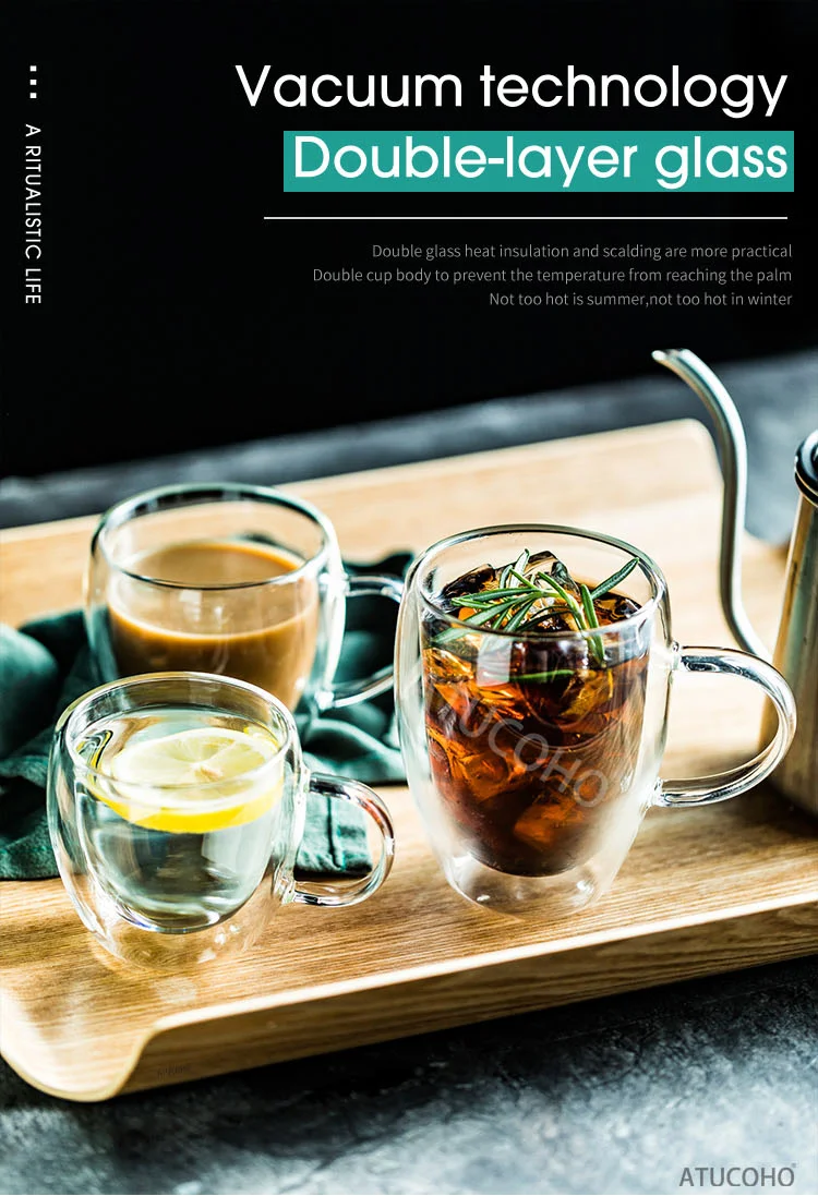 Прозрачная стеклянная чашка для молока, виски, чая, пива, двойная креативная термостойкая кофейная чашка эспрессо, Коктейльная водка, кружка для вина, посуда для напитков