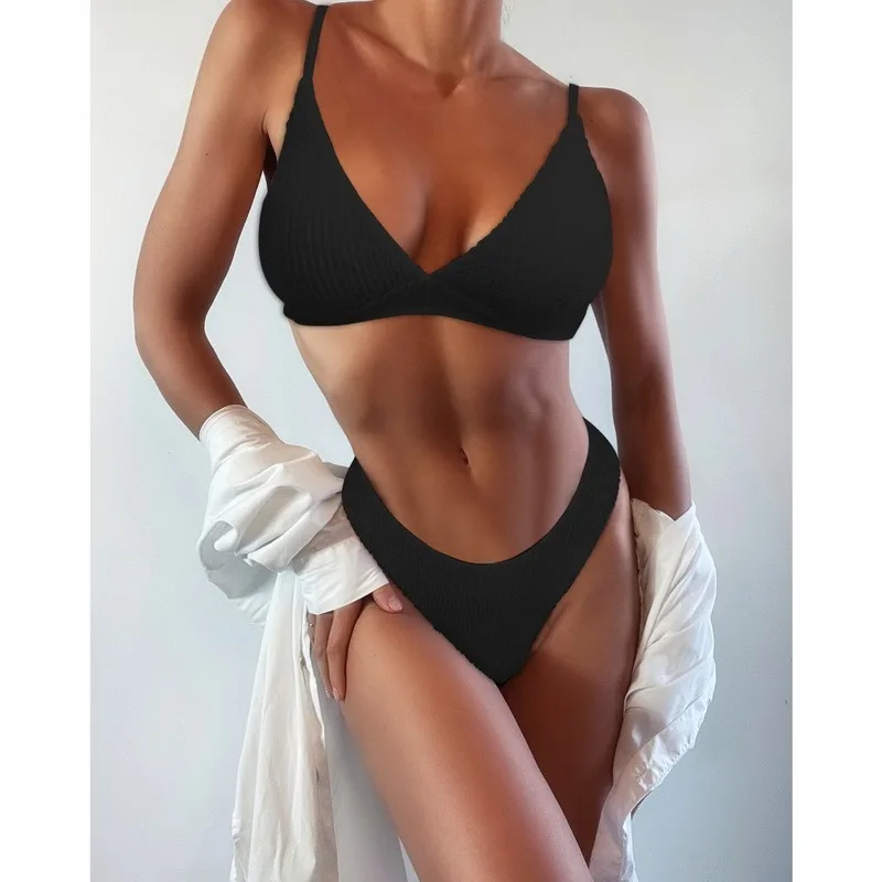 Сексуальное однотонное бикини в рубчик 2021, купальник для женщин, ...