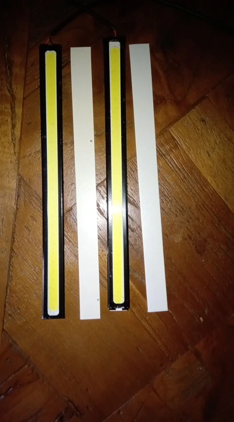 Много света. Светодиоды слегка нагреваются, но могут быть приклеены вручную без проблем. Кабели, которые он приносит, тонкие. Чтобы избежать отключения оригинальных кабелей, я укрепил соединение. Если Вы красивы, у вас не будет проблем. Принесите двухстороннюю ленту для сборки.