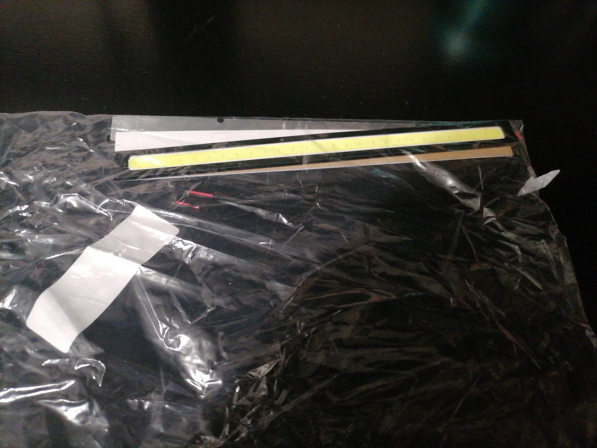 пришли довольно быстро. На фото намного качественнее, чем в реальности. Полоски светодиодов косовато вставлены, металлические рамки отходят... Крепление на двухсторонний скотч. Не уверен, что будут хорошо держаться. Как светит - ещё не проверял. Поставлю - дополню описание