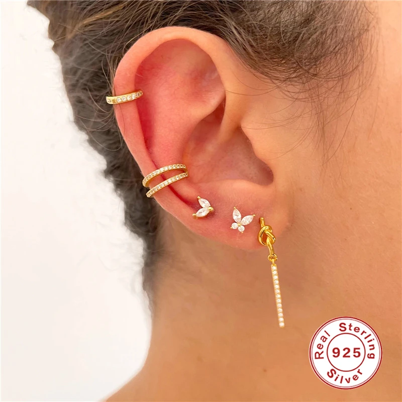 925 Sterling Silver EarringsGold/Silver Color Stud Earrings