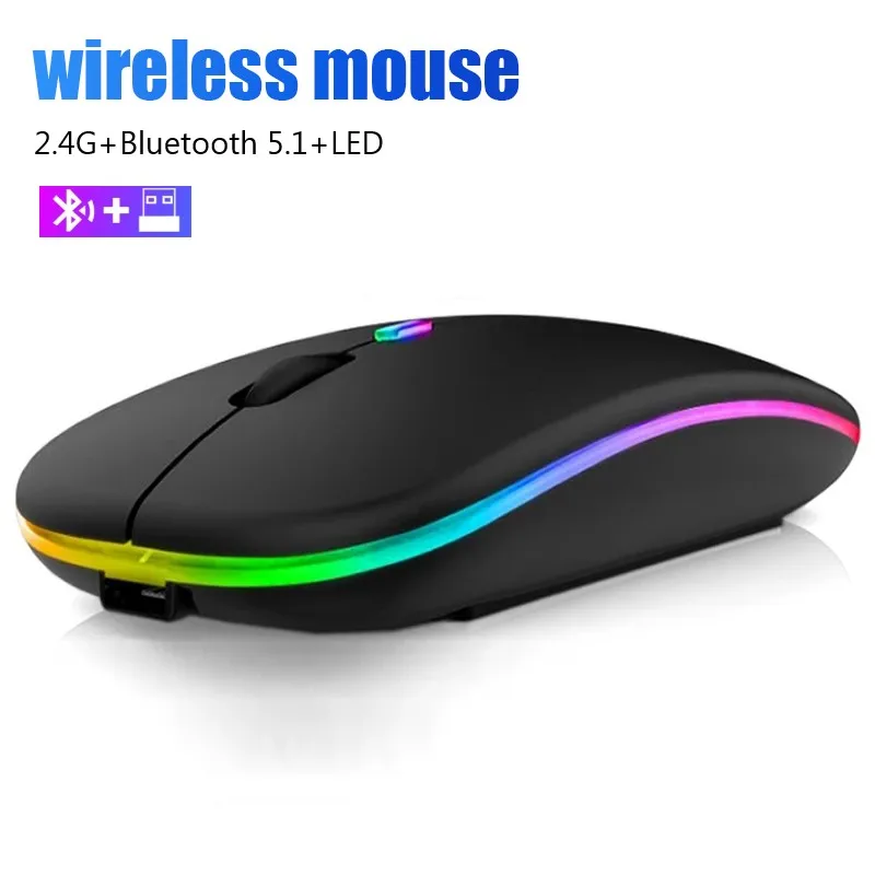 Bluetooth беспроводная с USB перезаряжаемая RGB мышь BT5.2 для ноутбука, компьютера, ПК, Macbook, игровая мышь 2,4 ГГц 1600DPI