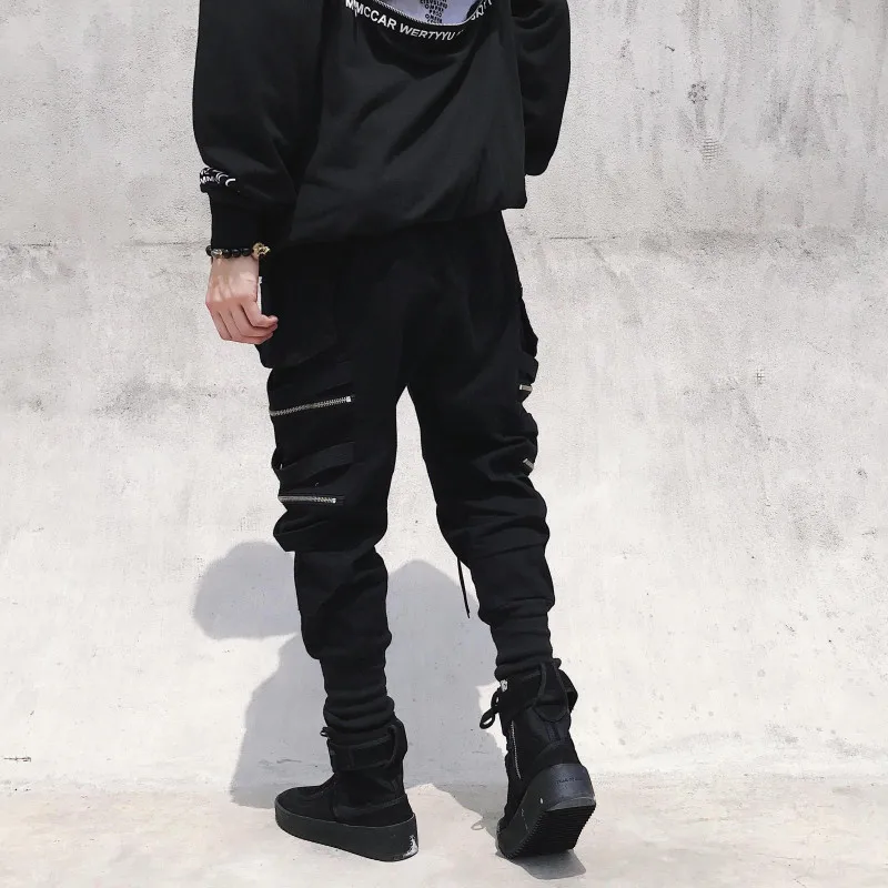 Emo JoggersHip Hop Men Ribbons Cargo Pants