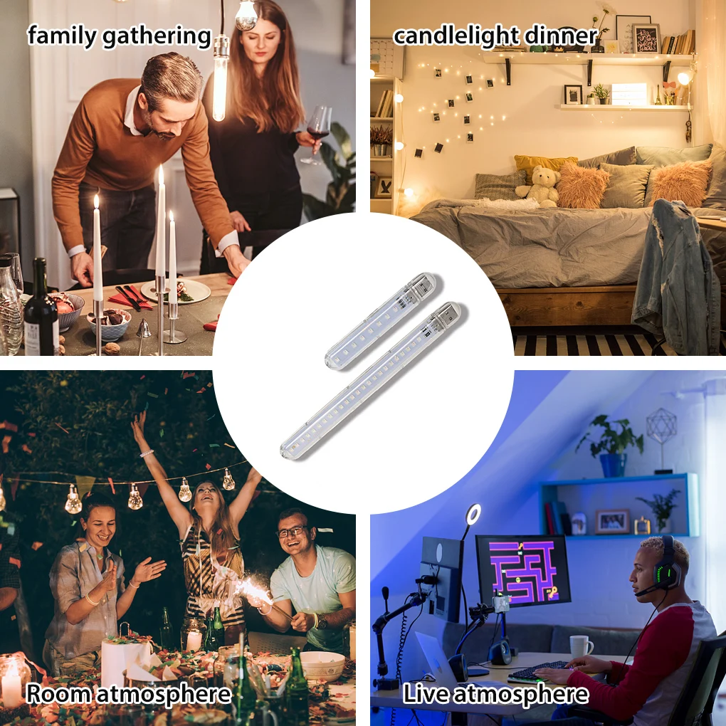 8 светодиодов светильник:Материал: ПВХ.Цвет: как на фотографии.Размер: прибл. 100*10*17 мм/3.94x0.39x0.67 дюймов.Мощность: 12 Вт.Напряжение: 5 В.Яркость: 100 лм.Эффект на светильник: 20 лм/Вт.Срок службы: около 100000 ч.Источник питания: USB.