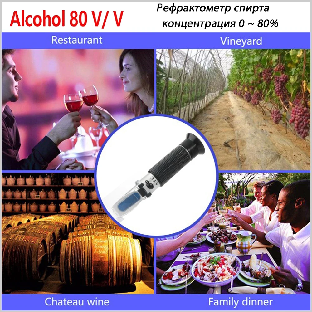 1. Эта модель работает для тестирования алкоголя (для проверки концентрации алкоголя в спиртовом растворе, а не виноградных или других фруктовых винах). Единица измерения: W/W (вес/вес), Рекомендуемая рабочая температура рефрактометров при 20 °C (около 18 °C до 25 °C).2. Точно Измерьте содержание алкоголя за считанные секунды! Все, что вам нужно сделать, это изготовить дистиллят измеряемых жидкостей, а затем поместить дистиллированный образец на призму.