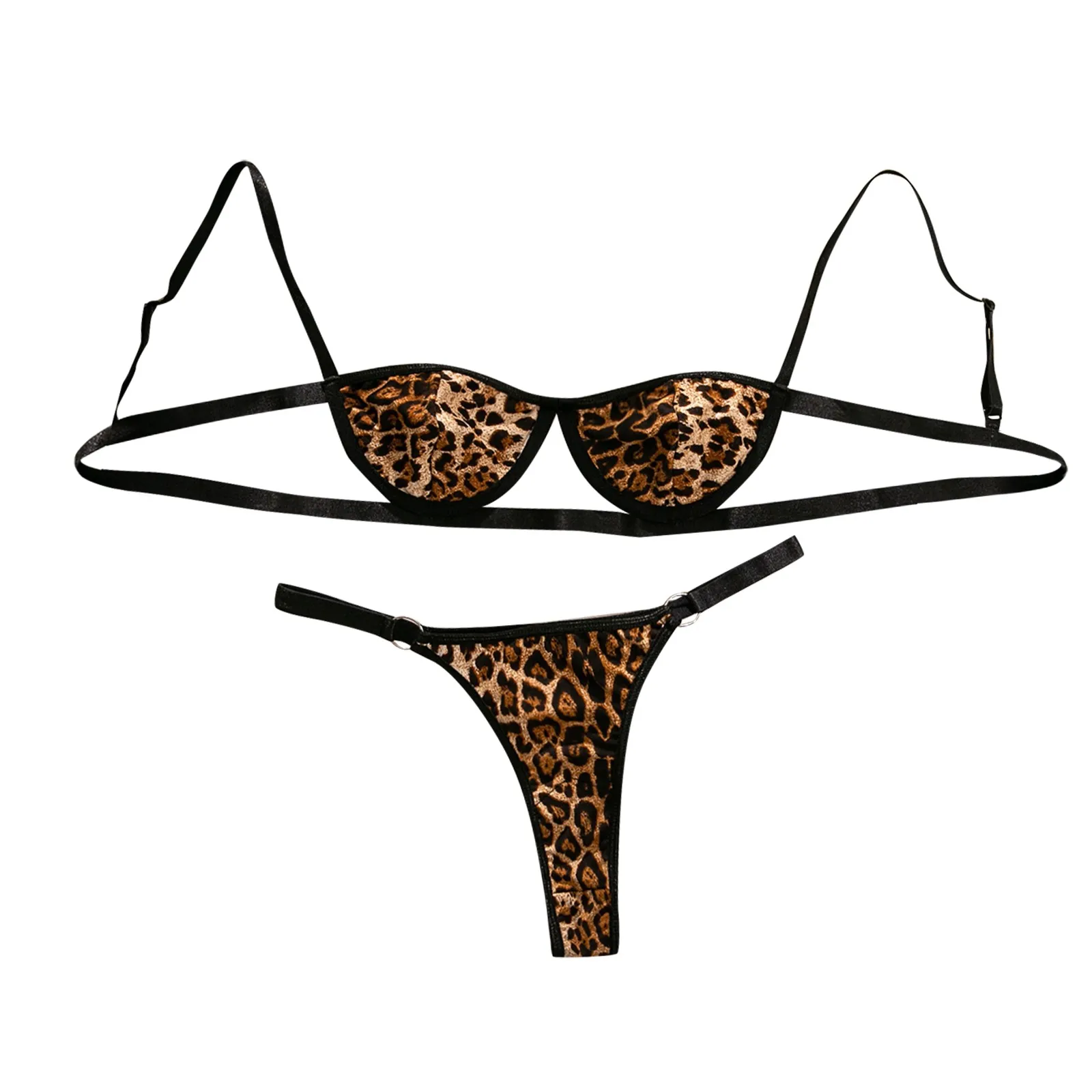 Женские экзотические комплекты с леопардовым принтом, купальный костюм с эффектом пуш-ап, купальный костюм, комплект сексуального белья, стринги, пижамы, женская модель 2021