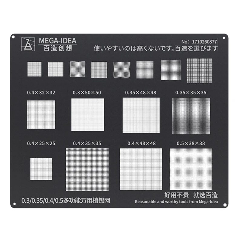 Универсальный трафарет Qianli MEGA-IDEA BGA, черный многофункциональный трафарет с параллельным отверстием 0,30,350,4 мм, Оловянная сетка, инструмент для реболлинга BGA