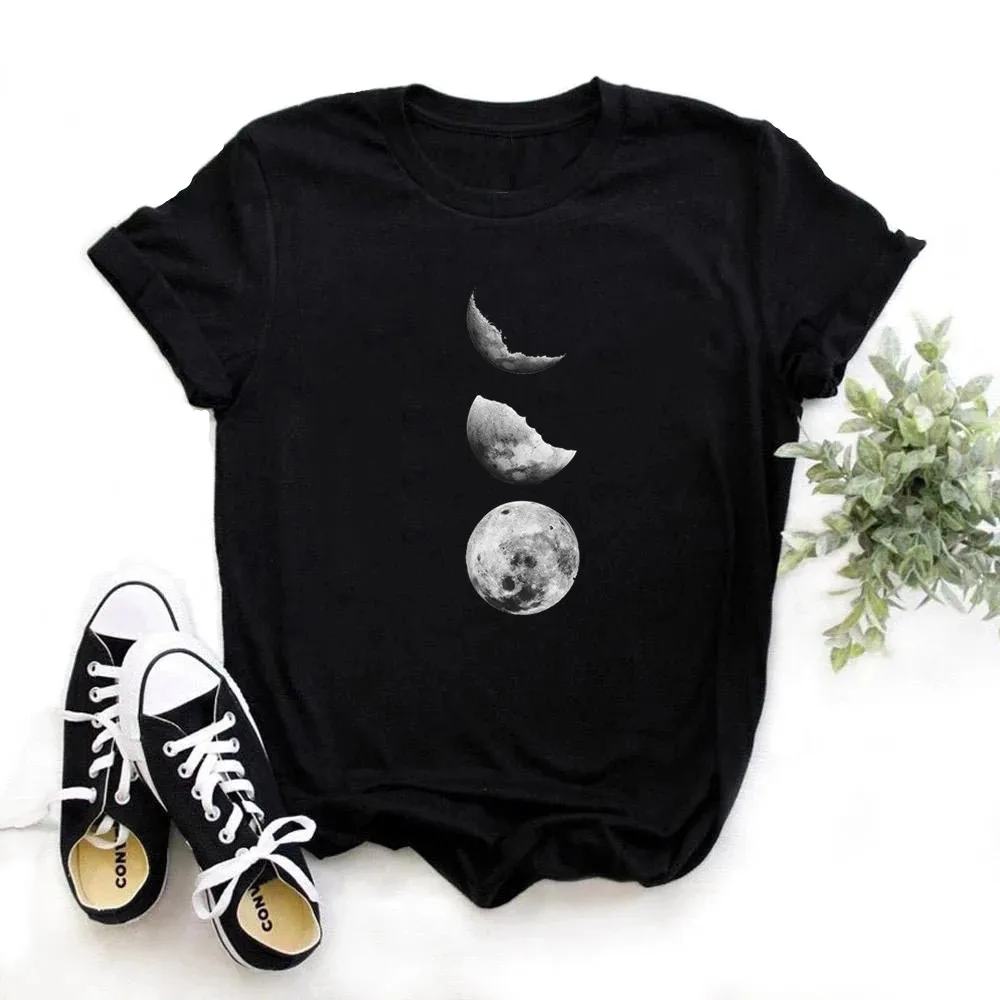 Женская футболка с принтом планеты Луны фазы, короткий рукав, повседневный топ с графическим принтом Eclipse, на лето