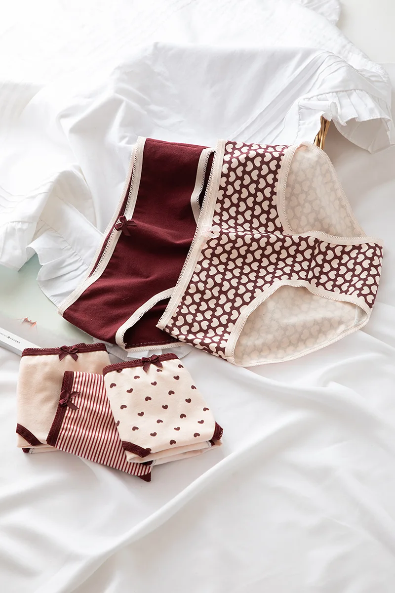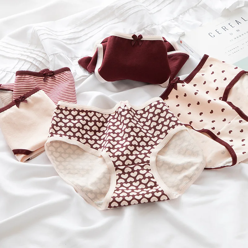 Хлопковые трусики, женские трусы, сексуальное женское нижнее белье, мягкое нижнее белье, кружевные трусики, трусики с сердечным принтом WDC506