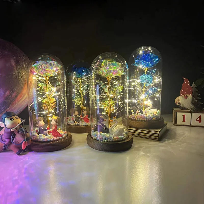 2022 LED зачарованная галактика Роза вечный 24K золотой Фольга цветок с сказочной гирляндой в куполе для рождества День Святого Валентина подарок