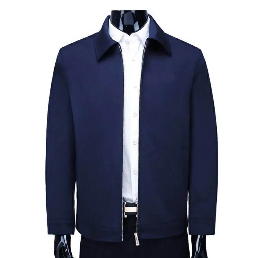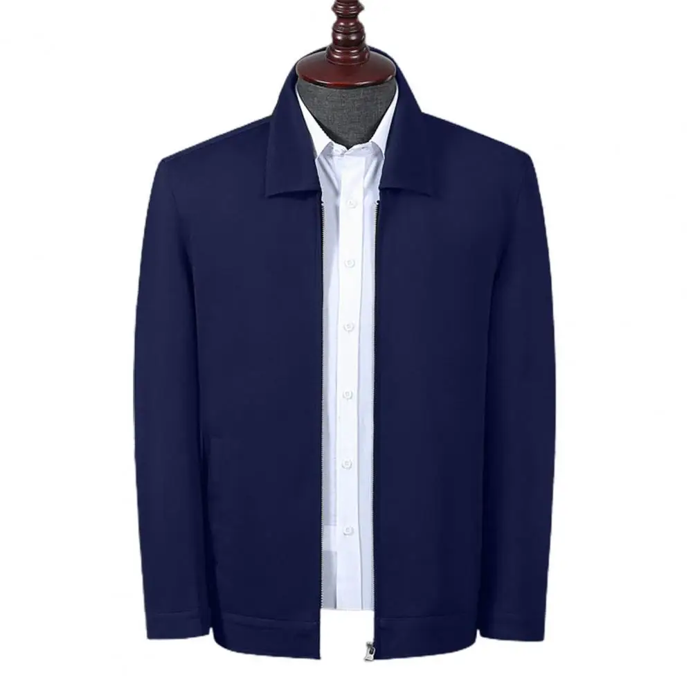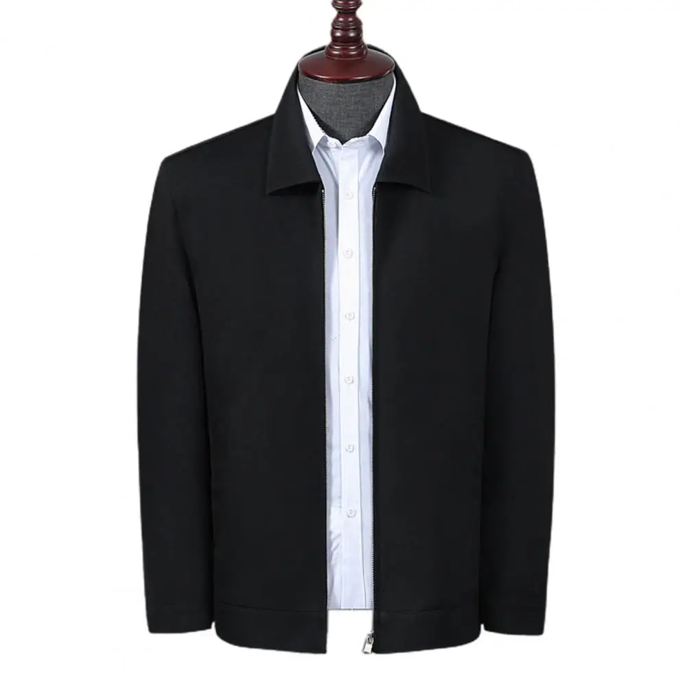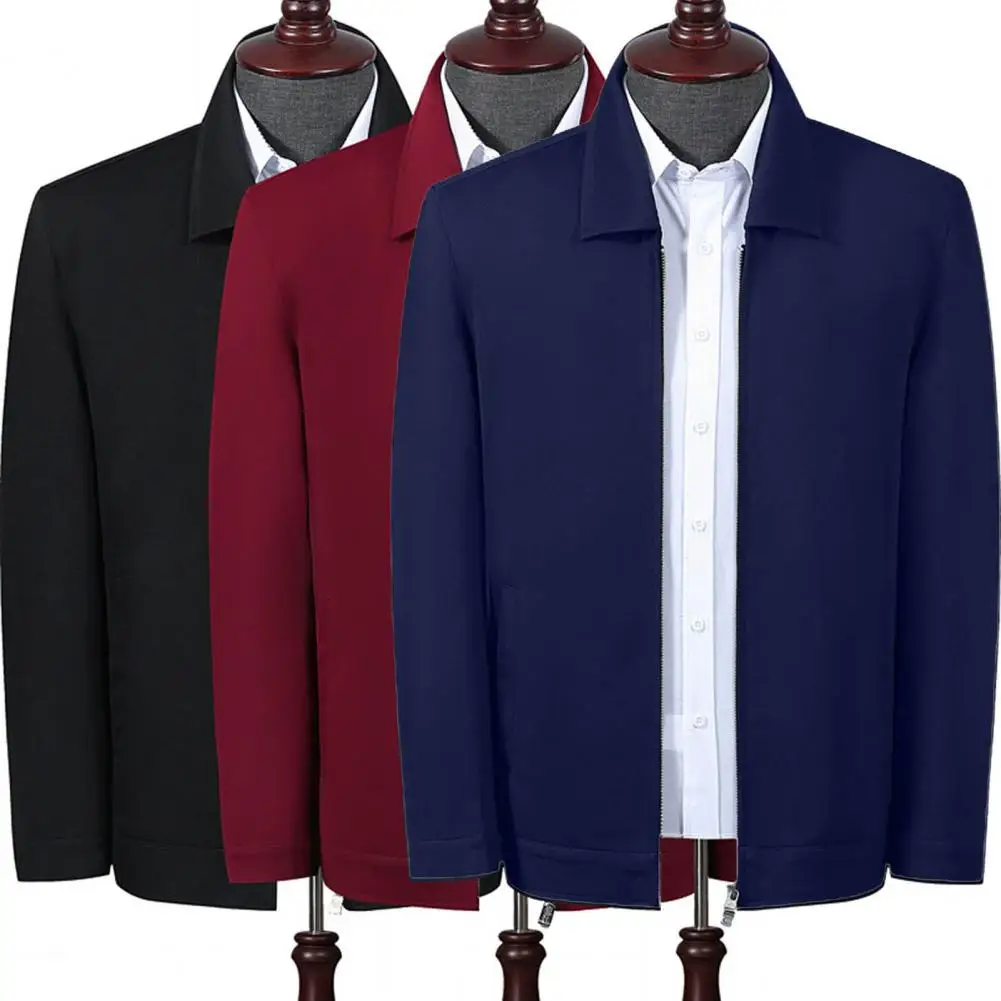 Мужское пальто, осенняя ветровка, повседневная куртка с отложным воротником, на молнии, простая одежда для мужчин среднего и пожилого возраста, одежда для отца, офисное пальто для повседневной носки
