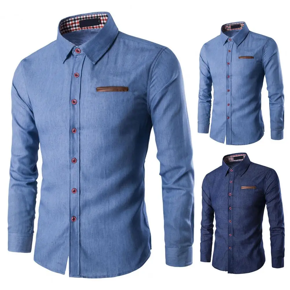 Джинсовая рубашка мужская с длинным рукавом, облегающая блуза из денима, однобортная рубашка в ковбойском стиле, офисная одежда