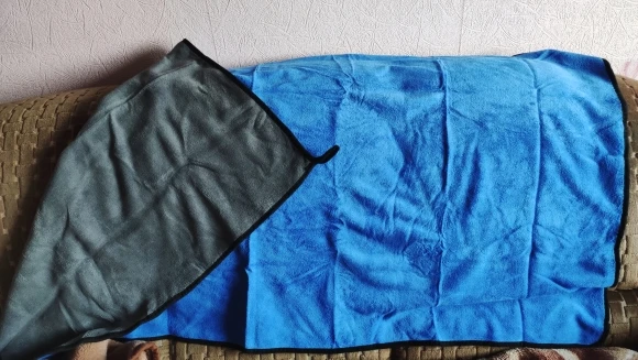 полотенце супер, жена очень довольна,собак вытирает почти насухо, отлично впитывает воду. будем заказывать ещё.