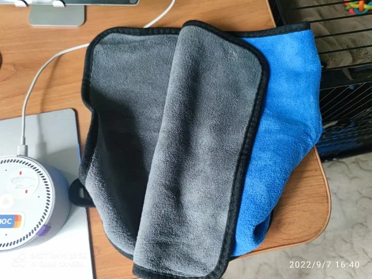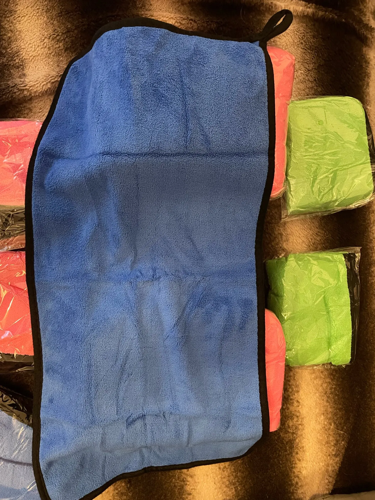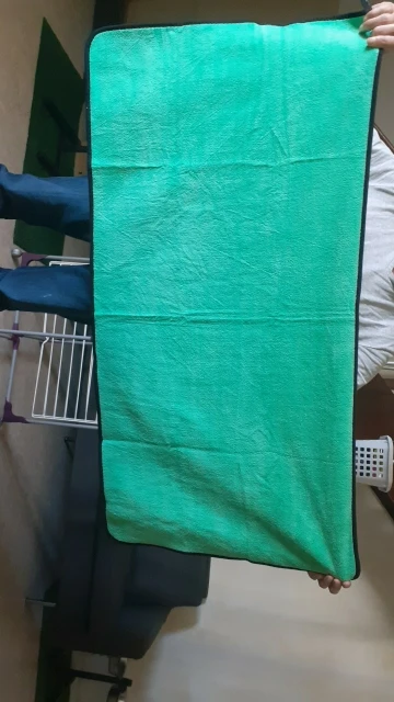 Супер полотенце. Очень понравилось! Впитавают влагу очень хорошо. Время сушки сократилось в 2 раза. Брала трех цветов, т.к. у меня 3 собачки. Для каждой свое полотенце.