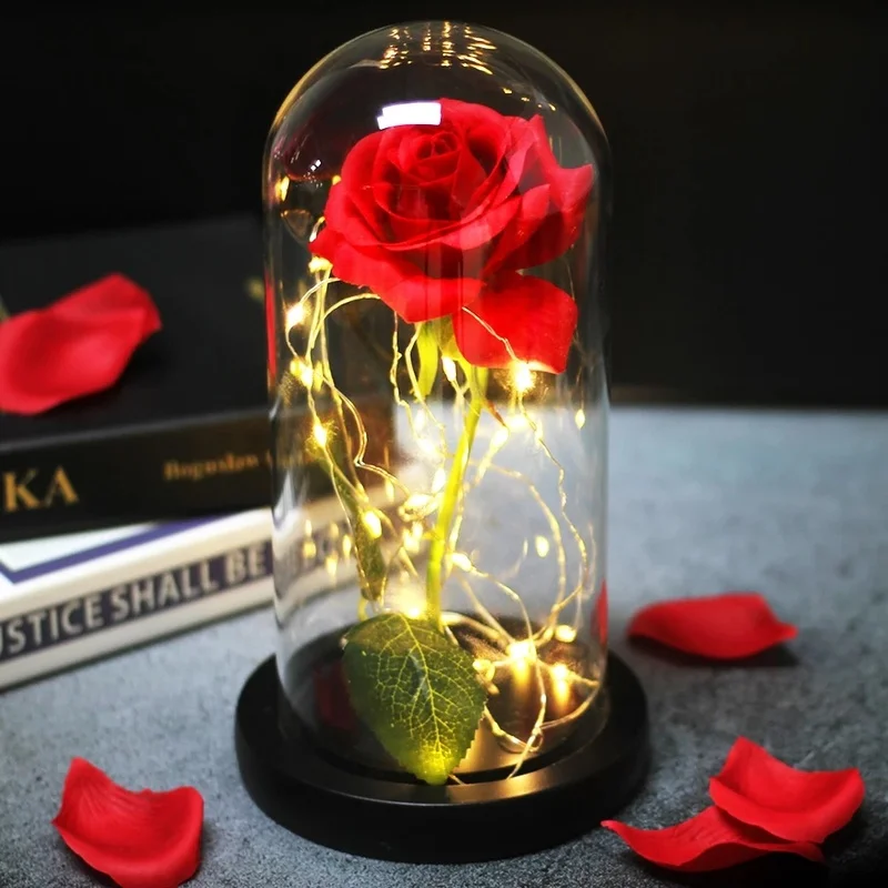 Искусственный вечный зверь, красивая роза, вечный цветок, купол для влюбленных, светодиодный подарок на Рождество, день рождения, День святого Валентина.