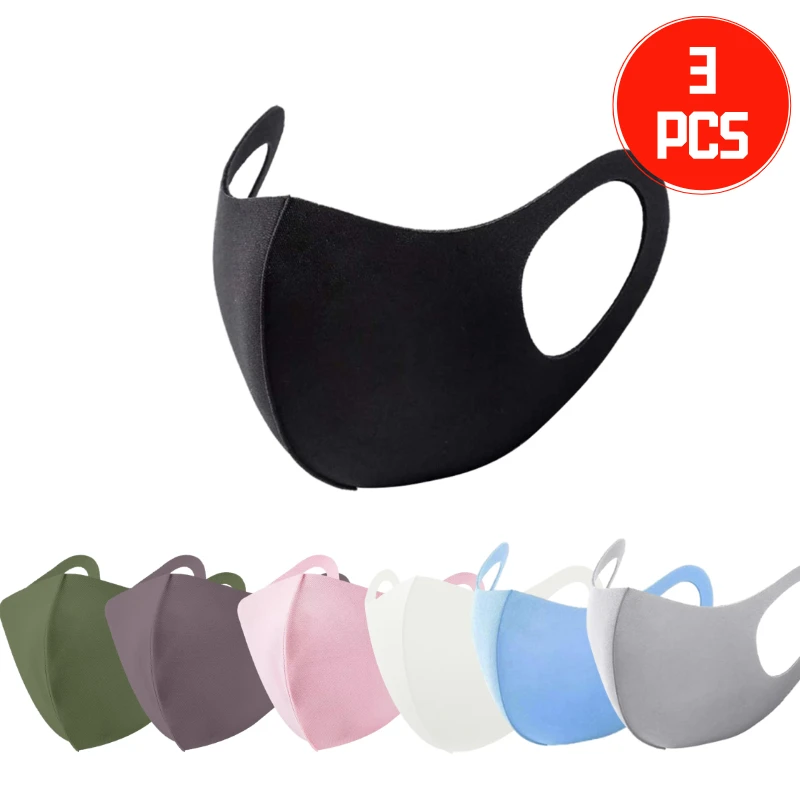 Маска для лица однотонная из дышащей ткани, 3 шт.