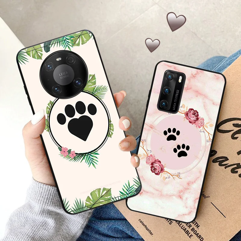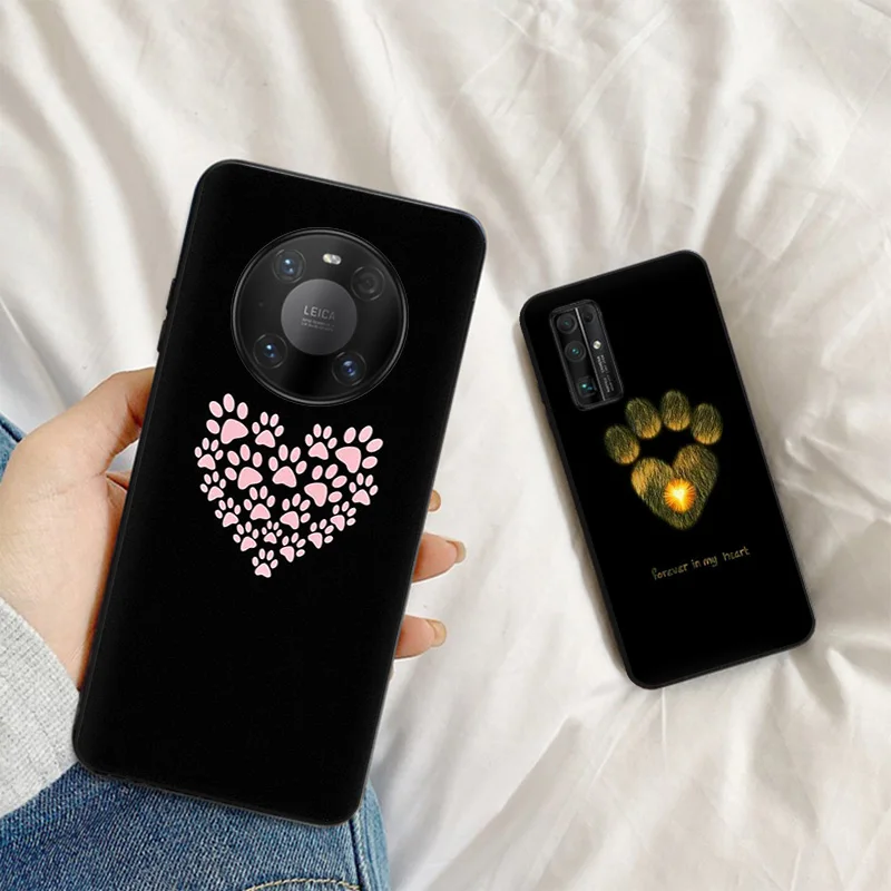 Чехол для телефона Huawei Y7A, Y9A, Y5P, Y6P, P10, Mate 20 Lite, 10 Pro, 40 RS, милый черный мягкий силиконовый чехол с собачьей лапой для Honor10