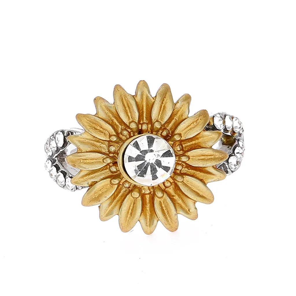 Кольцо с цветком подсолнуха женское, модное кольцо с кристаллами, с...