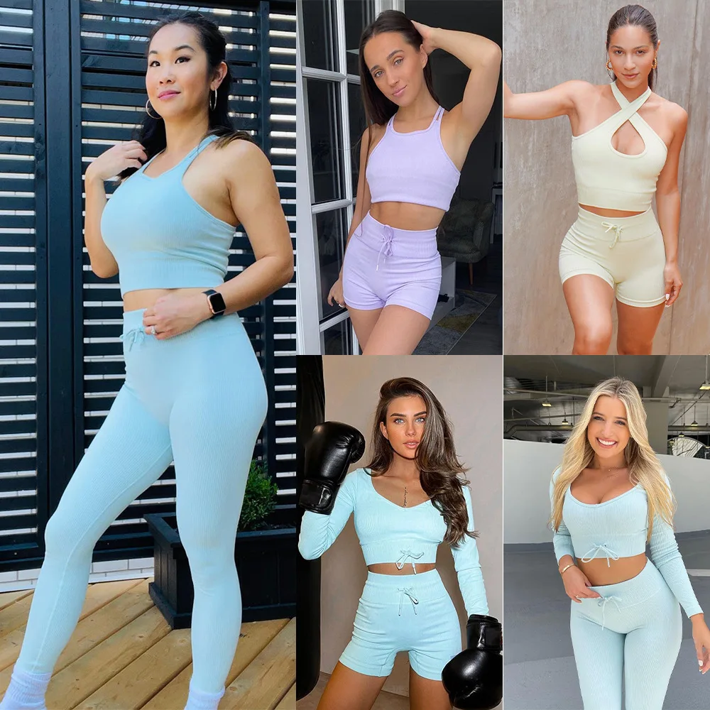 Женский спортивный комплект ярких цветов, одежда для спортзала, штаны для йоги в рубчик, леггинсы, спортивный бюстгальтер пуш-ап, короткий топ, шорты для фитнеса, Bdm костюмы для женщин