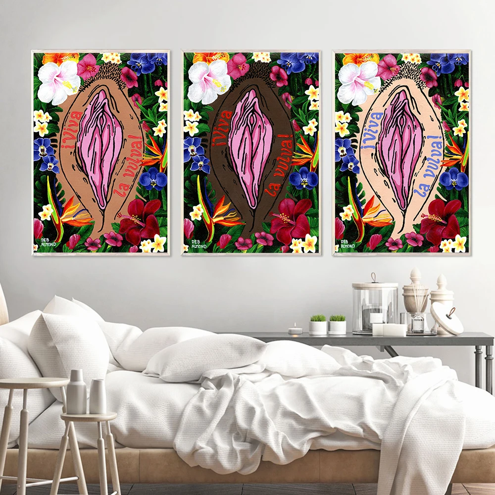 Бохо феминистский боди позитивная Художественная печать плакат цветы Вульва вагинальный знак холст фотографии доктор офис комната Настенный декор живопись