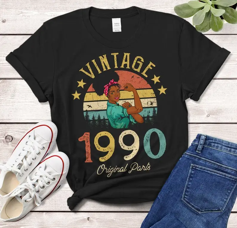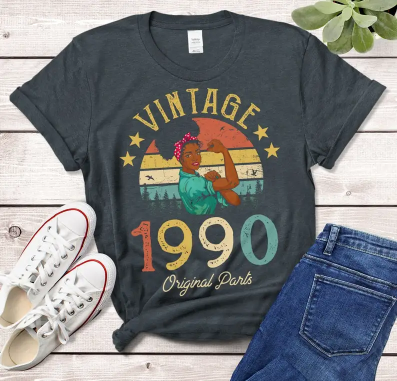 Футболка унисекс в винтажном стиле, модель 1990 года, футболка в африканском стиле, подарок для женщин на 32 день рождения, забавная модель y2k