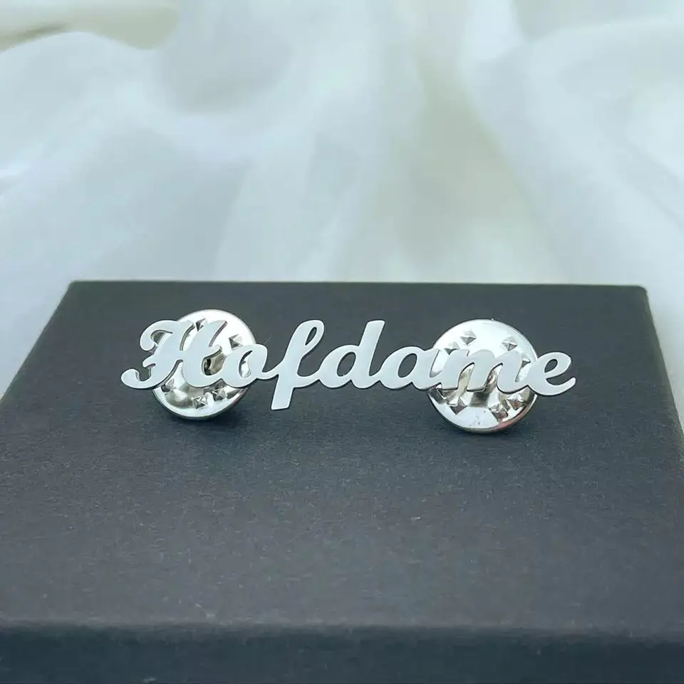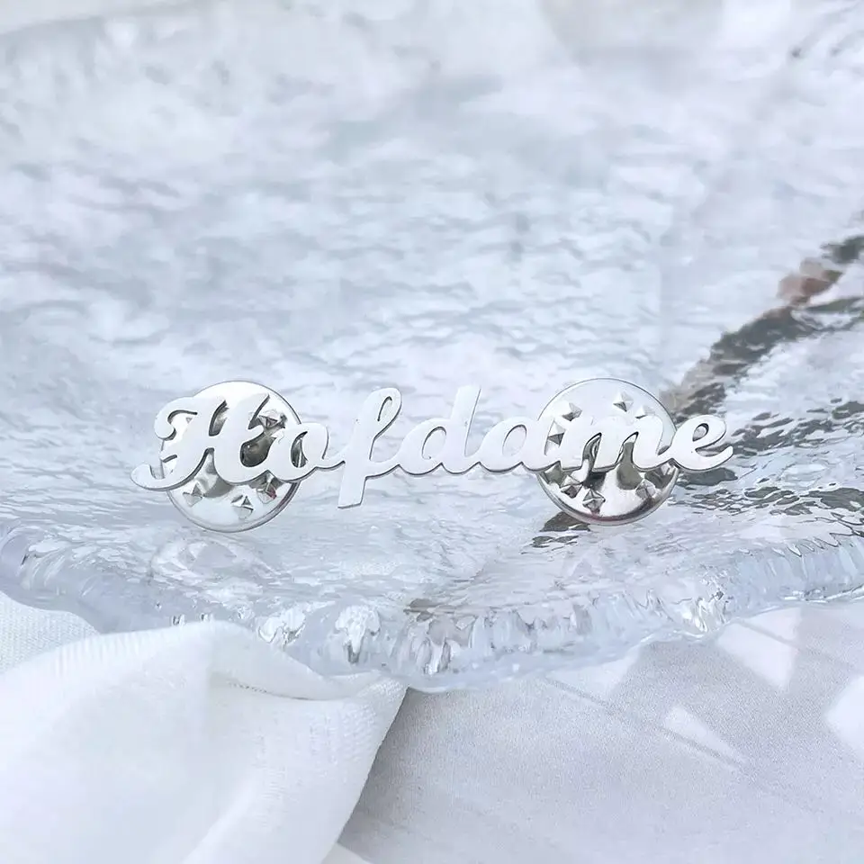 Персонализированная брошь с именем на заказ, пряжка на лацкан, значок на воротник из нержавеющей стали, булавки для женщин, Значки для встреч, Подарочные ювелирные изделия