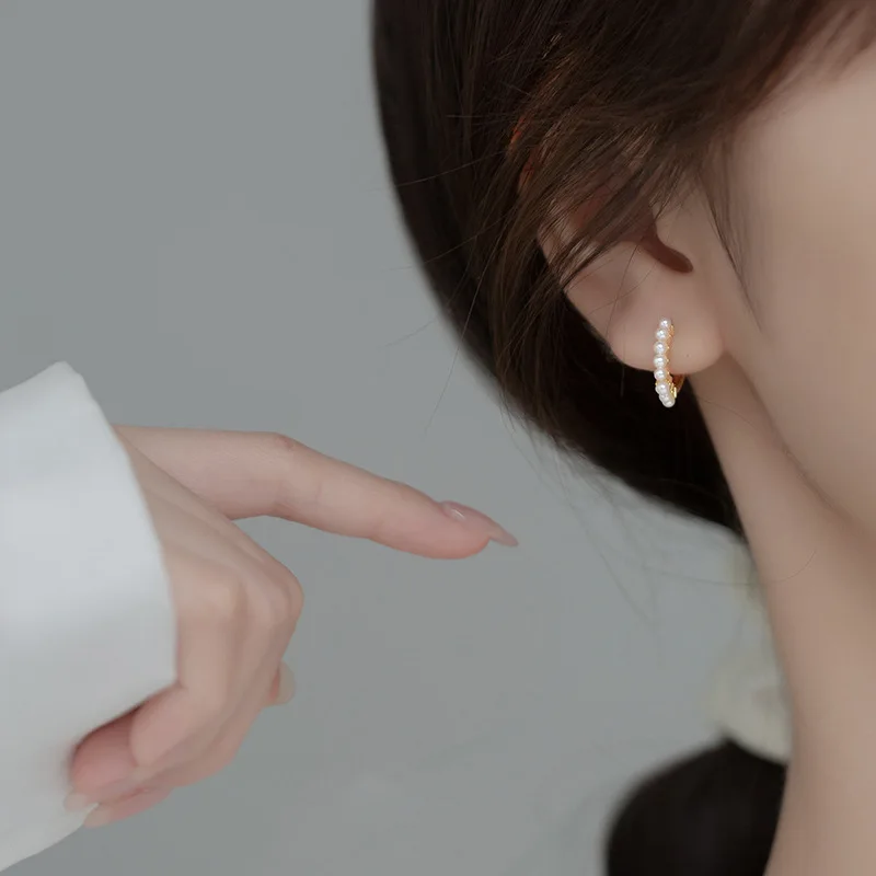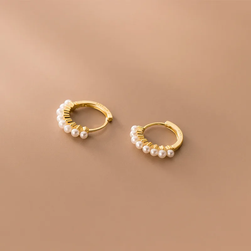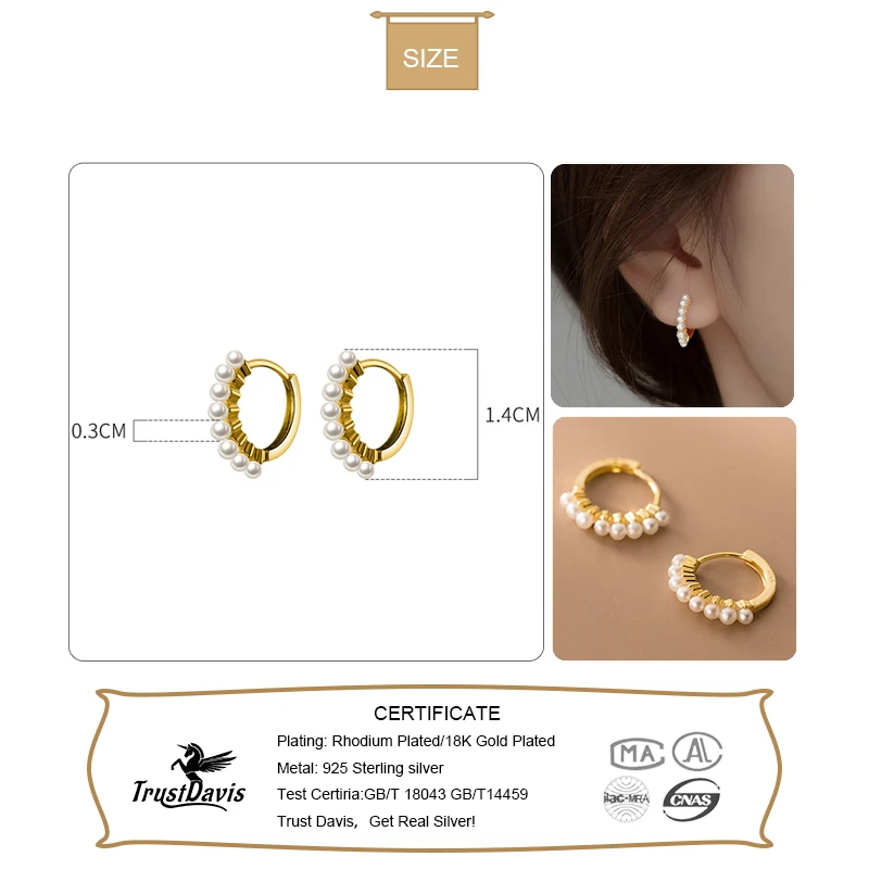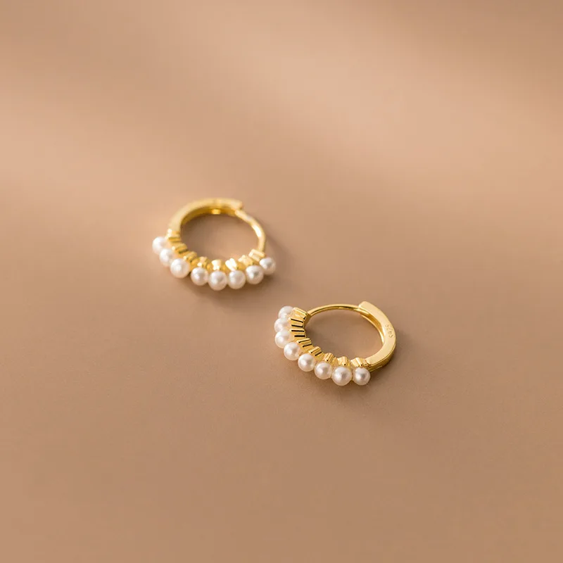 Серьги-кольца женские из серебра 925 пробы с жемчугом, DS1888