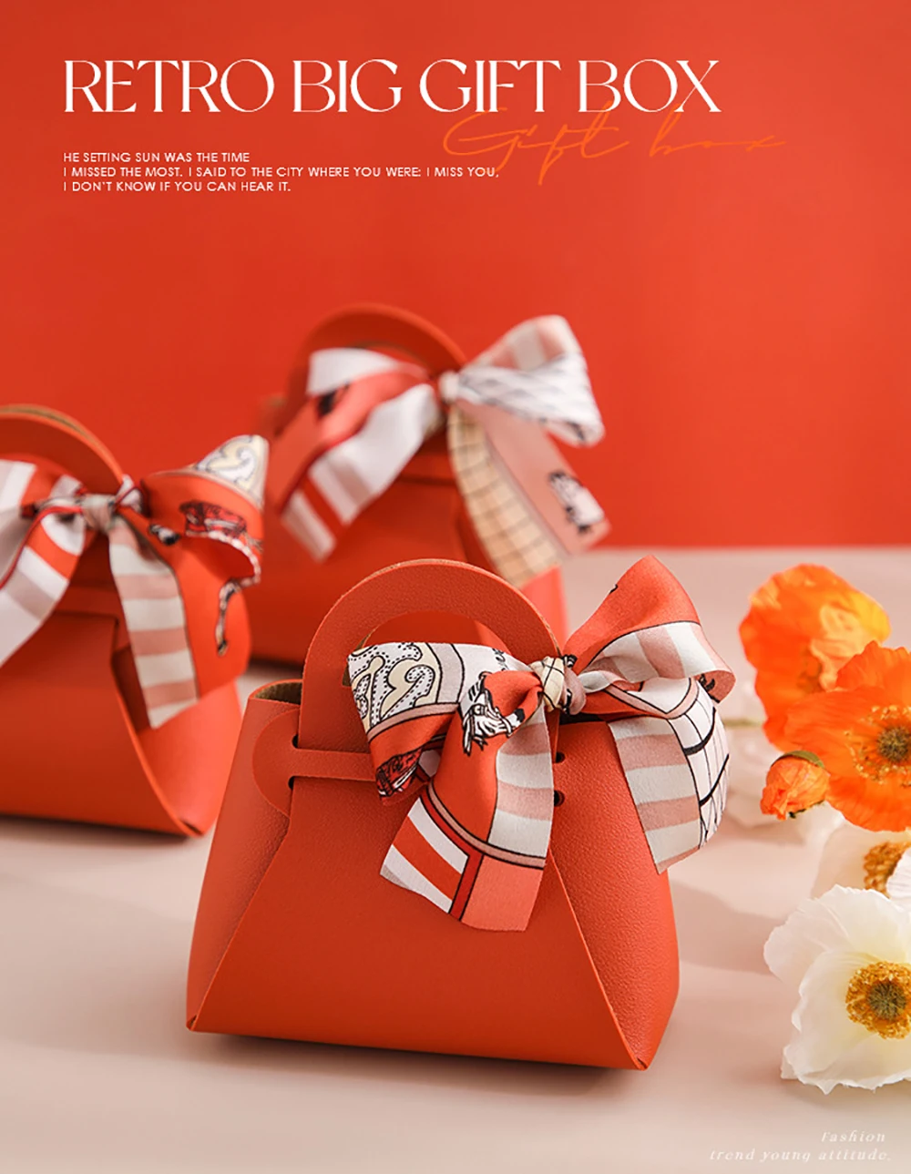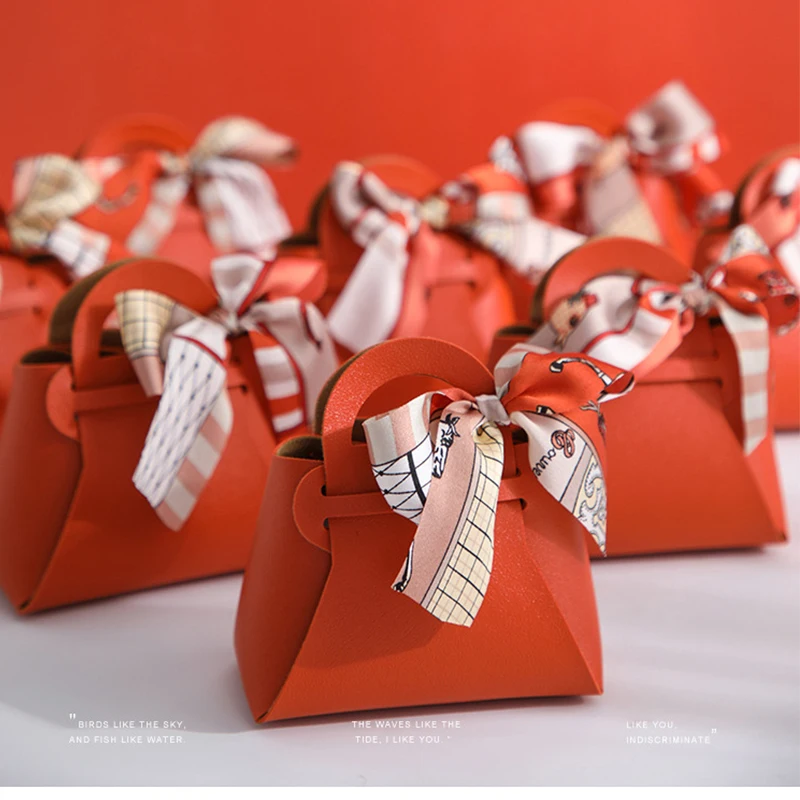 5 шт оранжевые кожаные подарочные сумки, креативные сумочки, упаковка в форме конфет, свадебные сувениры, Подарочная коробка для детского душа, вечерние