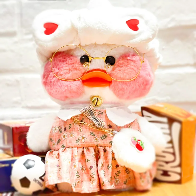 Kawaii Lalafanfan Cafe Mimi желтая плюшевая белая утка с очками кос...