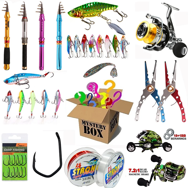 Lucky mystery рыболовный инструмент/набор относится к возможности неуверенности в товарах в наборе, который вы покупаете. Цель-создать сюрприз и загадку. Может быть, вам повезло! Различные сюрпризы, неожиданные подарки для рыболовных инструментов, так же, как и ваша удача, вы никогда не будете удивлены, наш набор рыболовных инструментов-ваш лучший выбор, У вас может быть шанс получить большой сюрприз. Однако, если вы не хотите рисковать и ожидать слишком много, эта игра может быть не для вас.