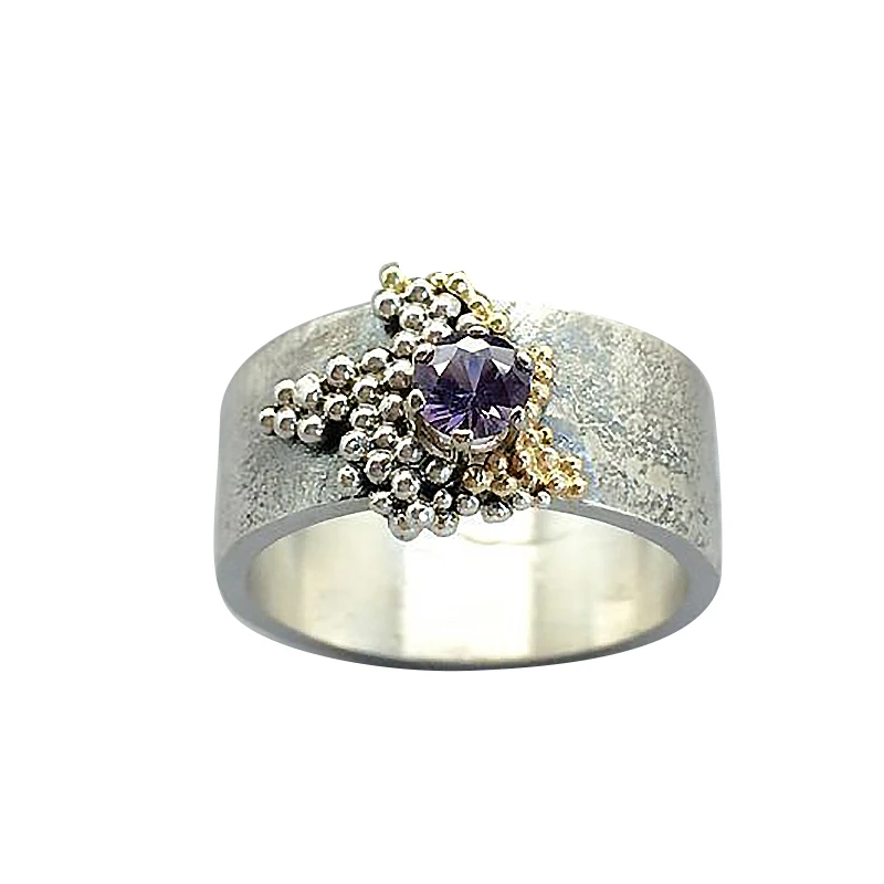 Женское кольцо с фиолетовым кристаллом, стразы из фианита