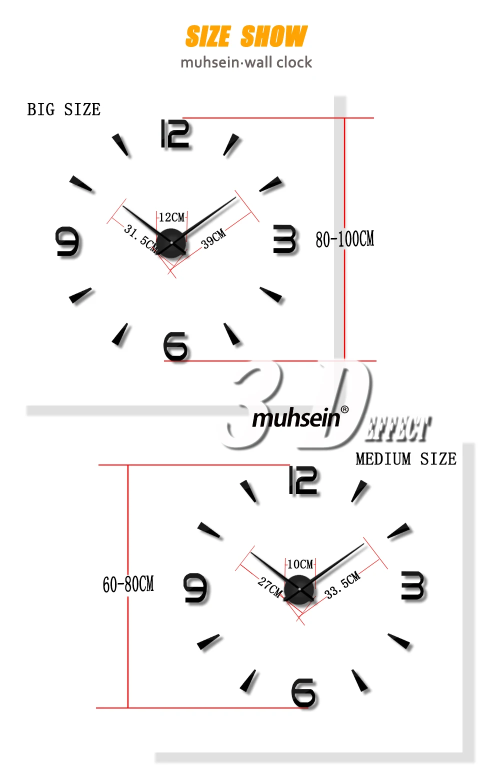 Muhsein 2021 Новый дом украшения настенные часы 3D большое количест...