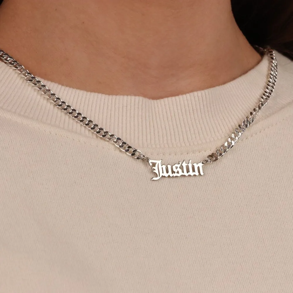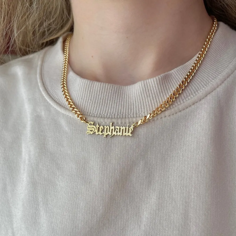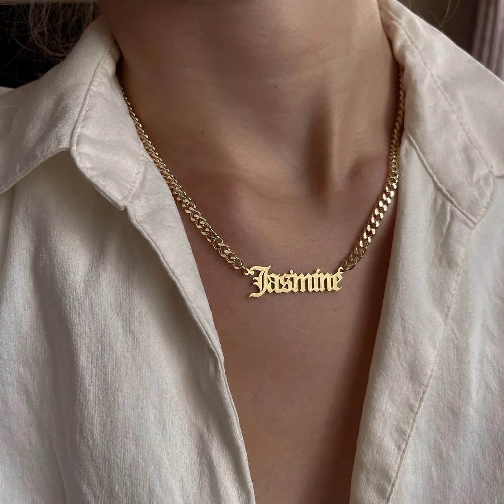 Название: Заказное старинное английское имя ожерелье для женщин персонализированное из нержавеющей стали Золотая кубинская цепочка на заказ колье на подарок на день рождения