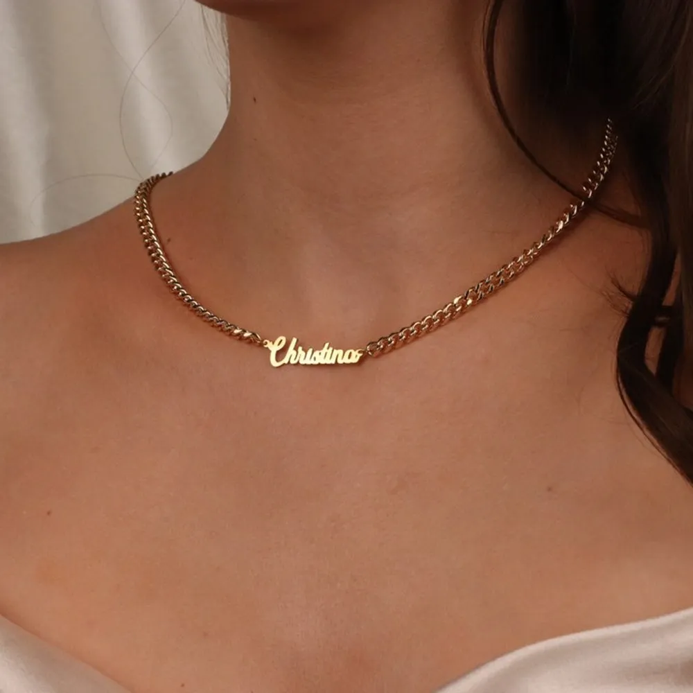Ожерелье с именем на заказ, кубинская цепочка из нержавеющей стали ...