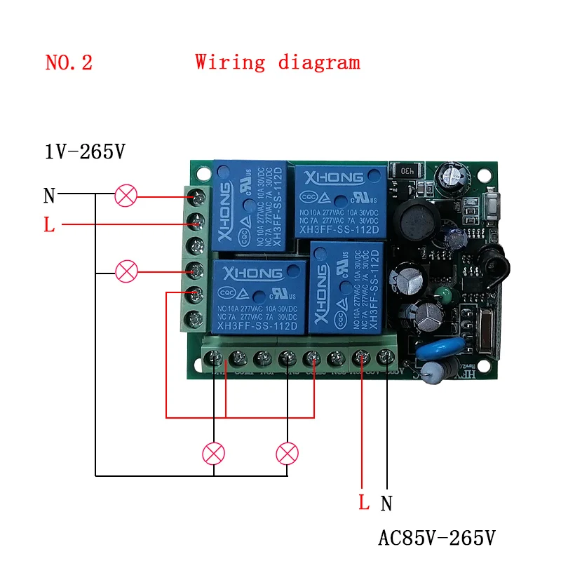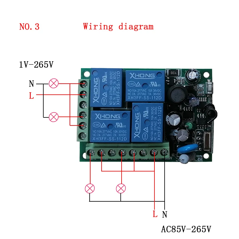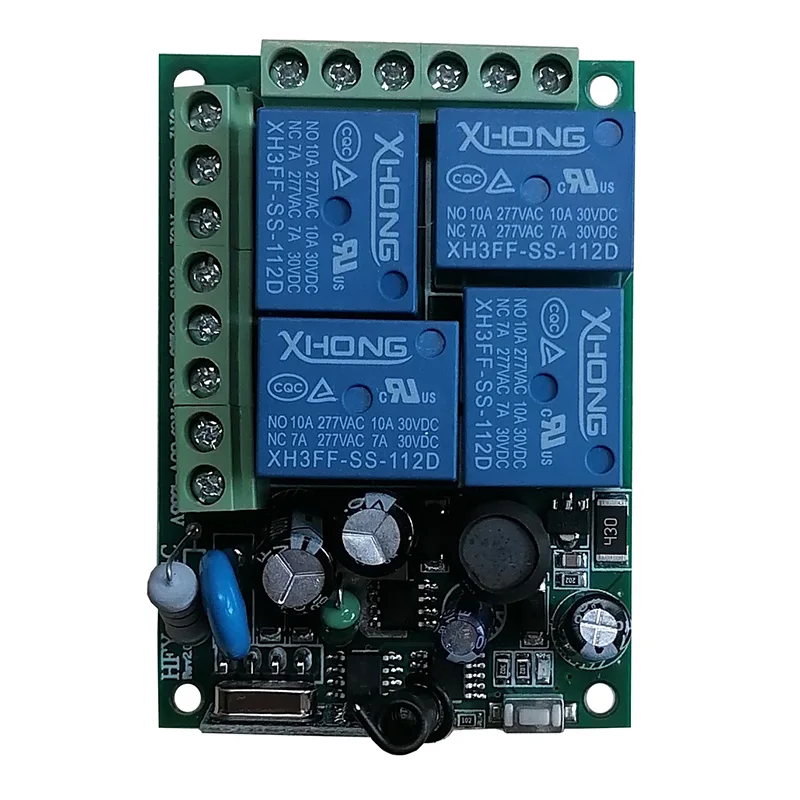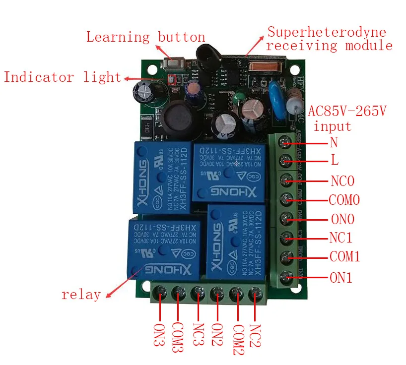 4.2CH мгновенный + 2CH переключатель: Нажмите кнопку обучения на плате приемника четыре раза (светодиодный индикатор на плате приемника будет сигнализировать одновременно), затем нажмите любую из кнопок дистанционного управления, сигнал три раза через светодиодный индикатор дистанционного управления означает успешную настройку.