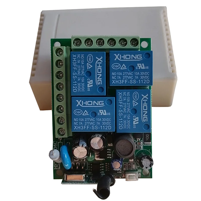 3. Блокированный режим: Нажмите кнопку обучения на плате приемника три раза (светодиодный индикатор на плате приемника будет сигнализировать одновременно), затем нажмите первую кнопку дистанционного управления, следуйте за второй кнопкой дистанционного управления, три раза сигнальный светодиодный индикатор на пульте дистанционного управления позволяет успешно установить режим блокировки (первая кнопка включена, Вторая кнопка выключается).