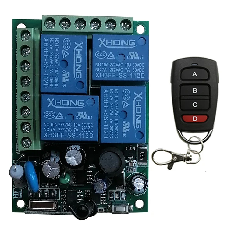Нажмите одну кнопку в течение одного времени, соответствующий канал работает/включается; Нажмите другую кнопку остановки/выключения (в то же время другой соответствующий канал работает).(4-канальный переключатель (приемник) Требуется 4 кнопки дистанционного управления (передатчик).