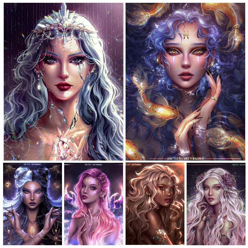 Полноразмерная Алмазная 5d картина со знаками Зодиака, 12 созвездий...