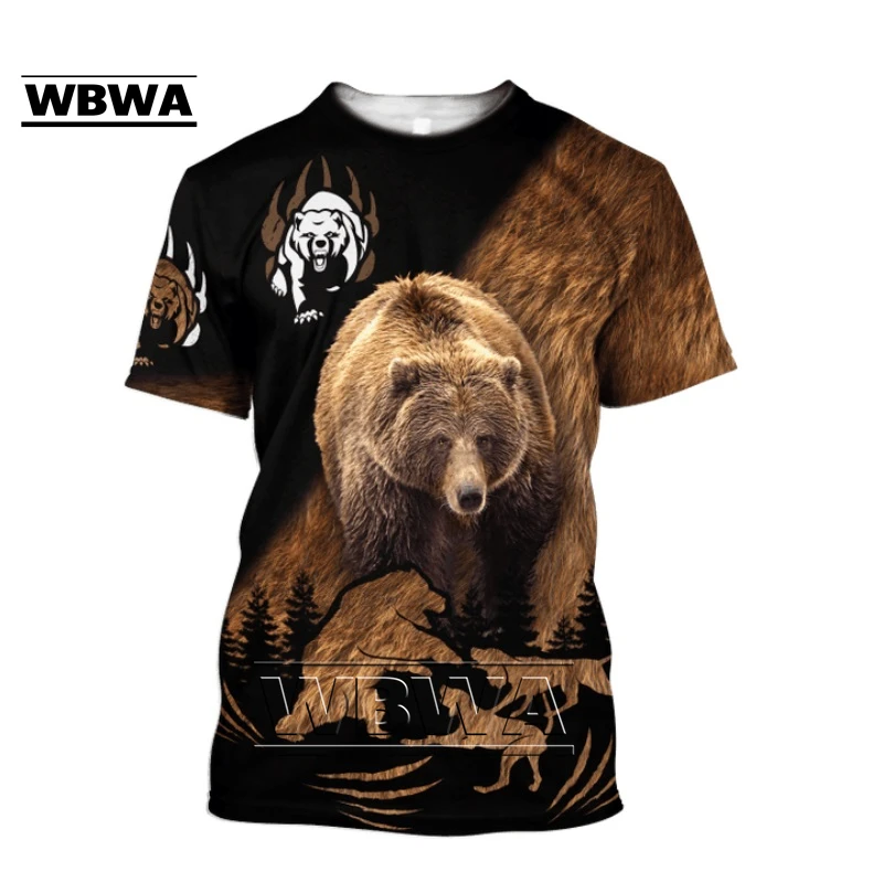 Футболка мужская с 3D-принтом медведя, модная рубашка с коротким рукавом в стиле Харадзюку, уличная одежда, топ в стиле унисекс, на лето