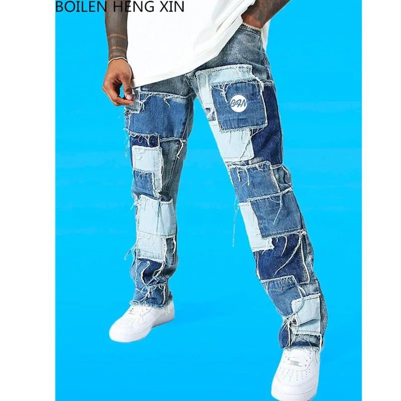 Новинка 2022, мужские прямые джинсы с вышивкой, модные мужские джинсы