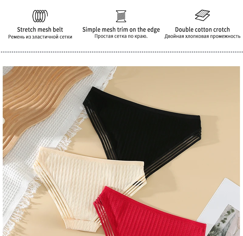 3 шт., Женские однотонные дышащие трусы с низкой посадкой