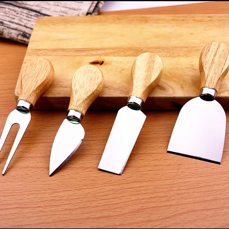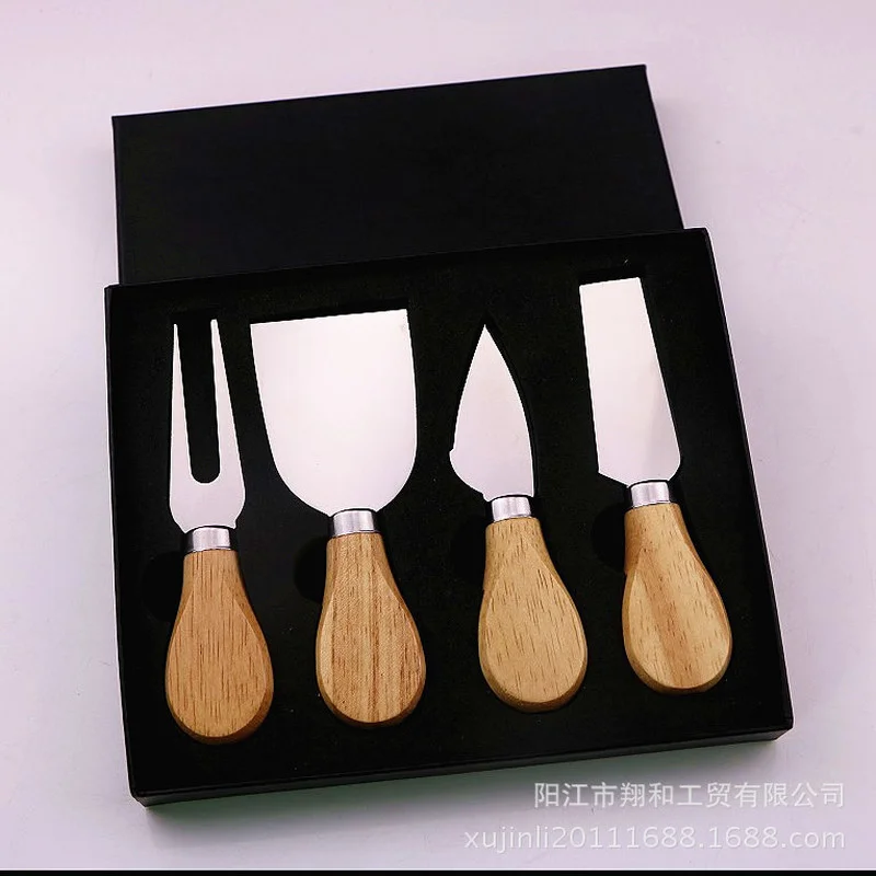 4 шт.компл. Набор ножей с деревянной ручкой из дуба, бамбука, сыра