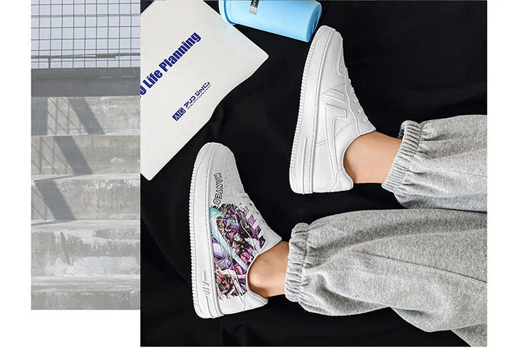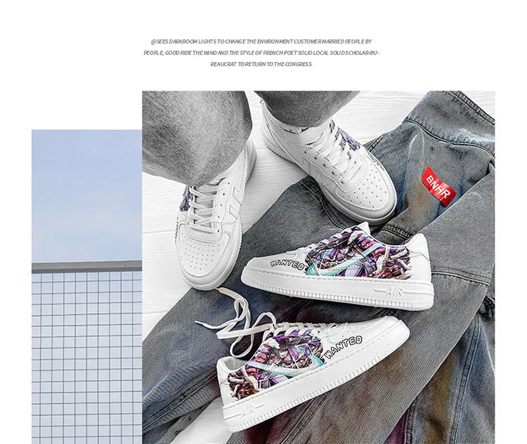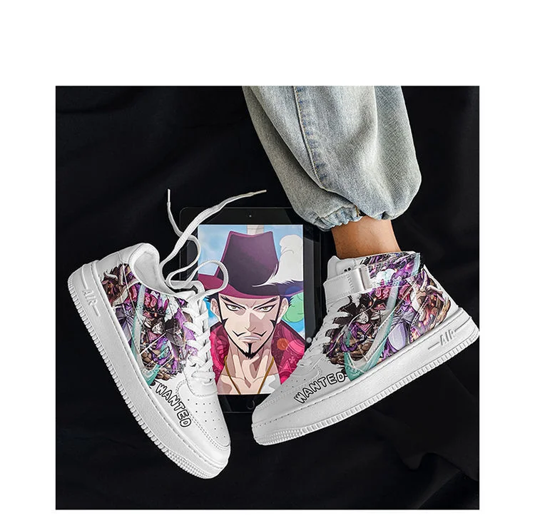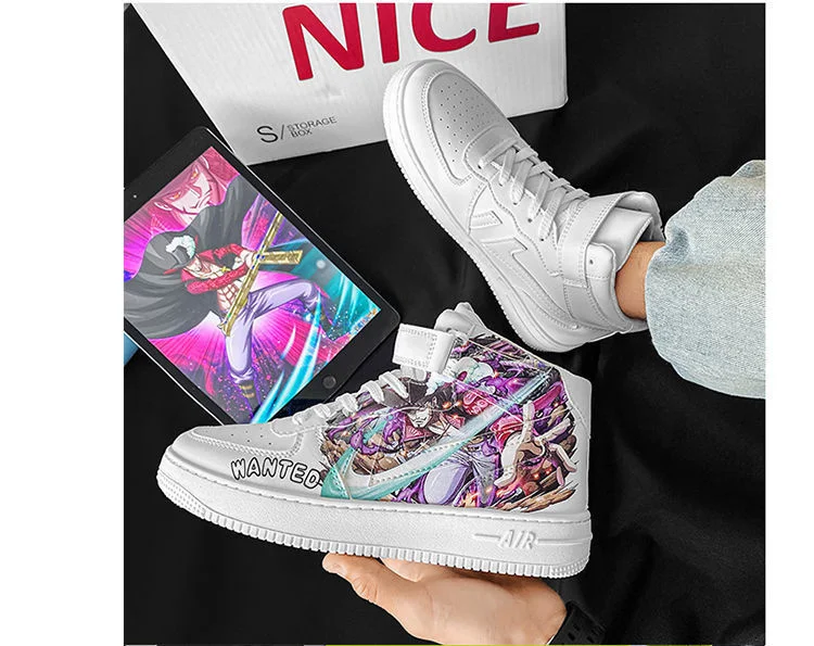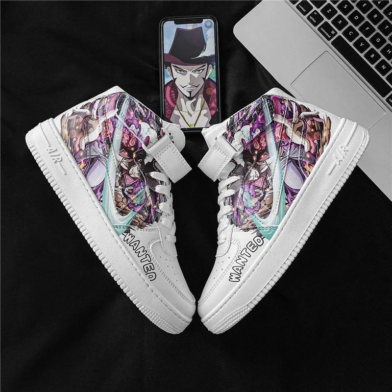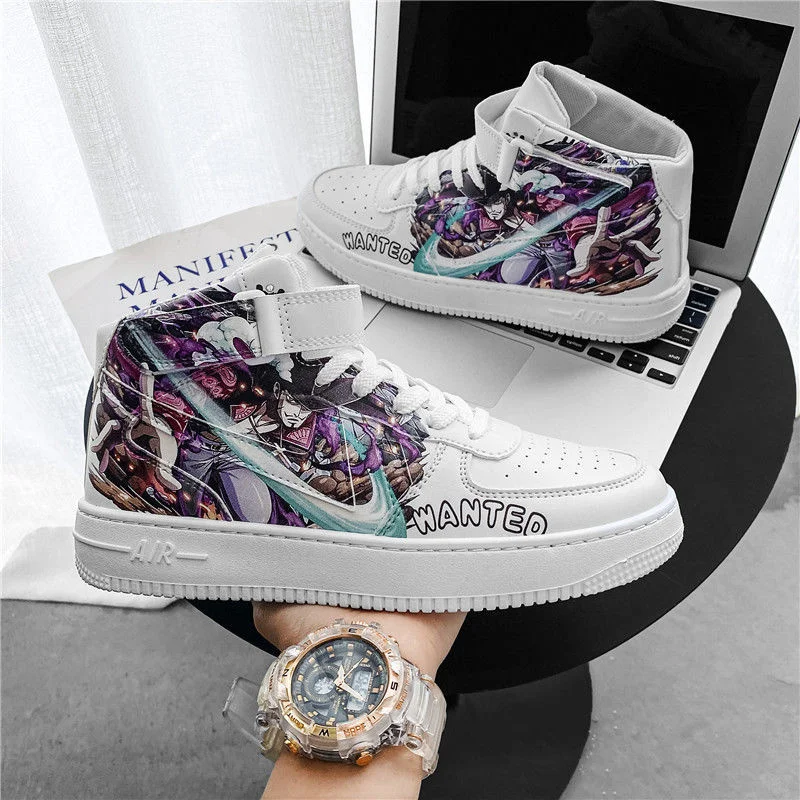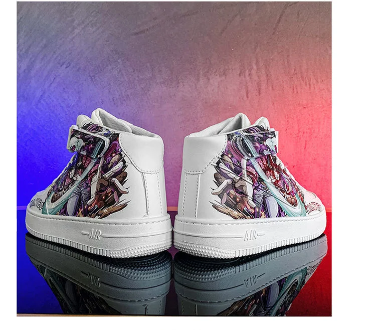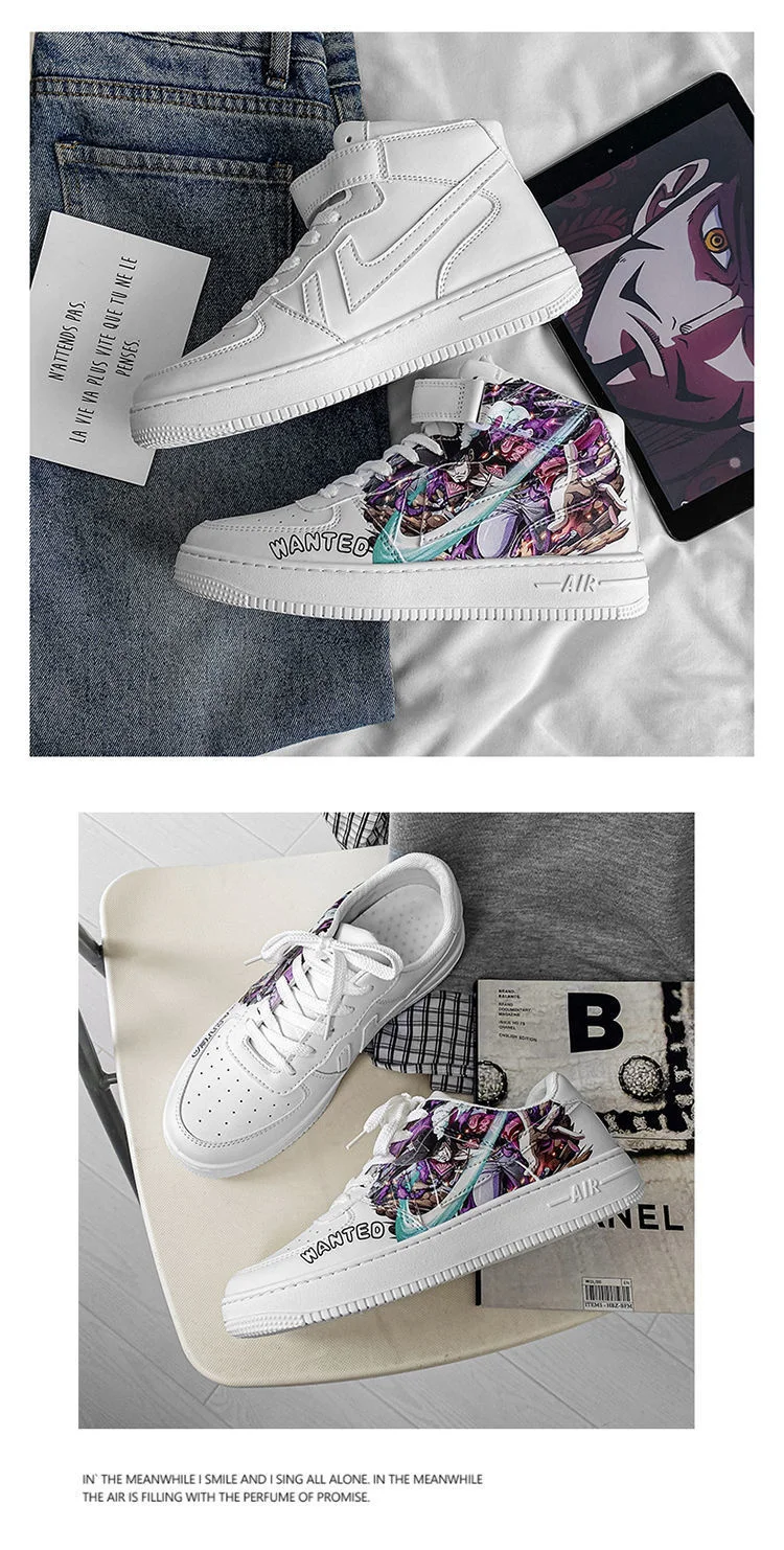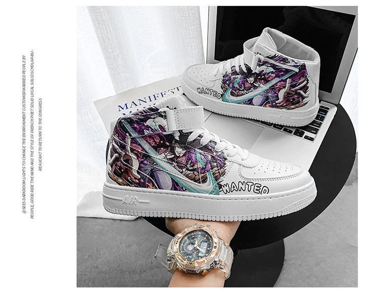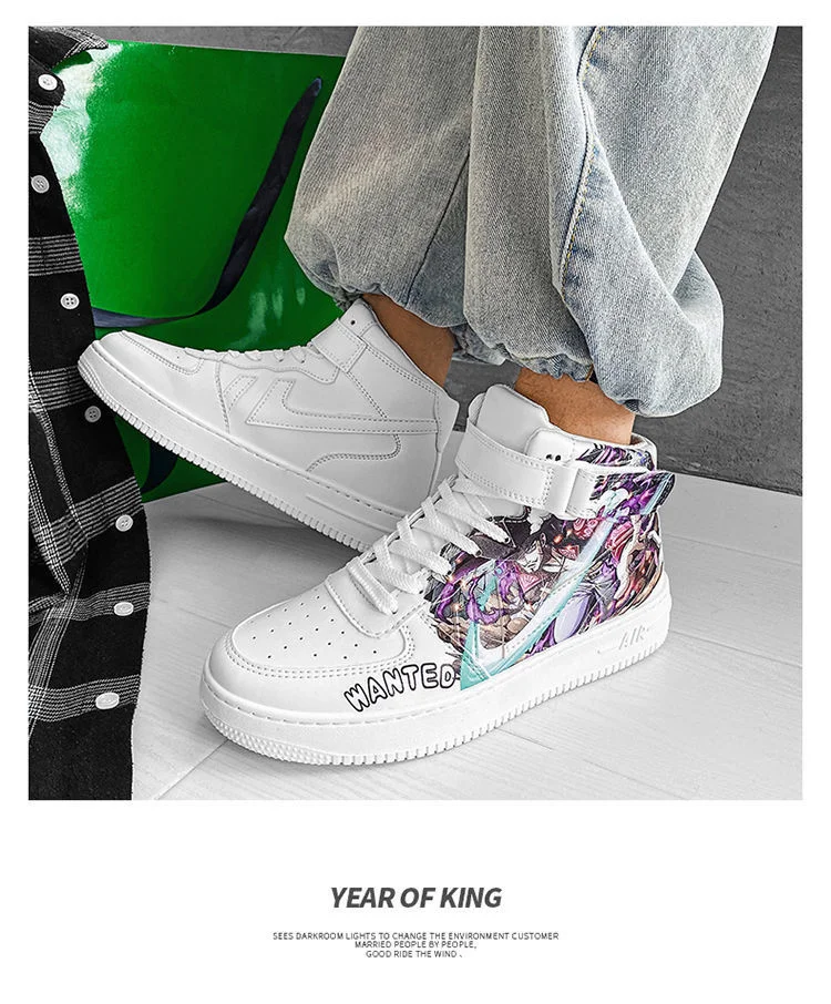 Мужские кожаные кроссовки с аниме-рисунком, высокие берцы для тенни...
