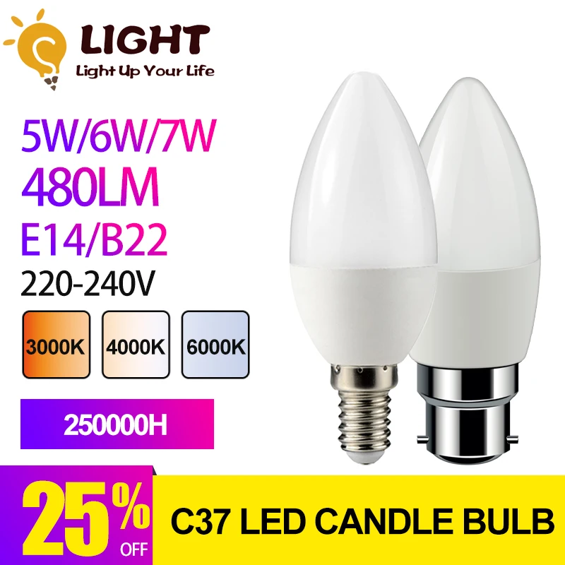 Светодиодсветодиодный лампа C37 3 Вт 5 Вт 6 Вт 7 Вт E14 B22 E27 220 в 3000K 4000K 6000K