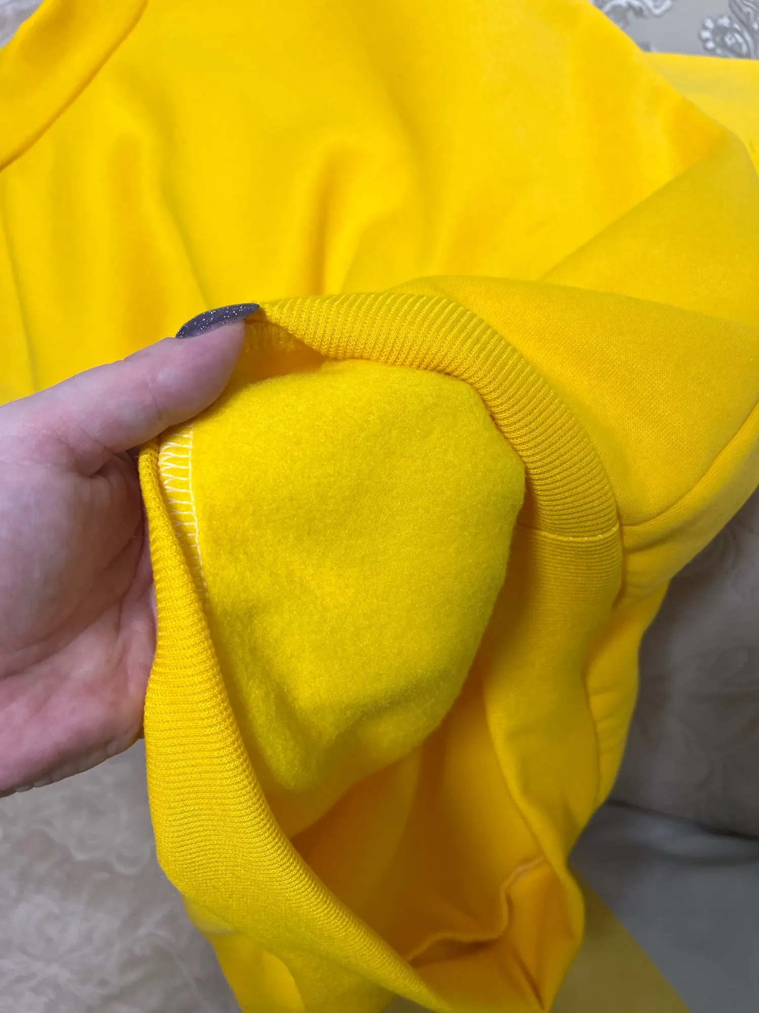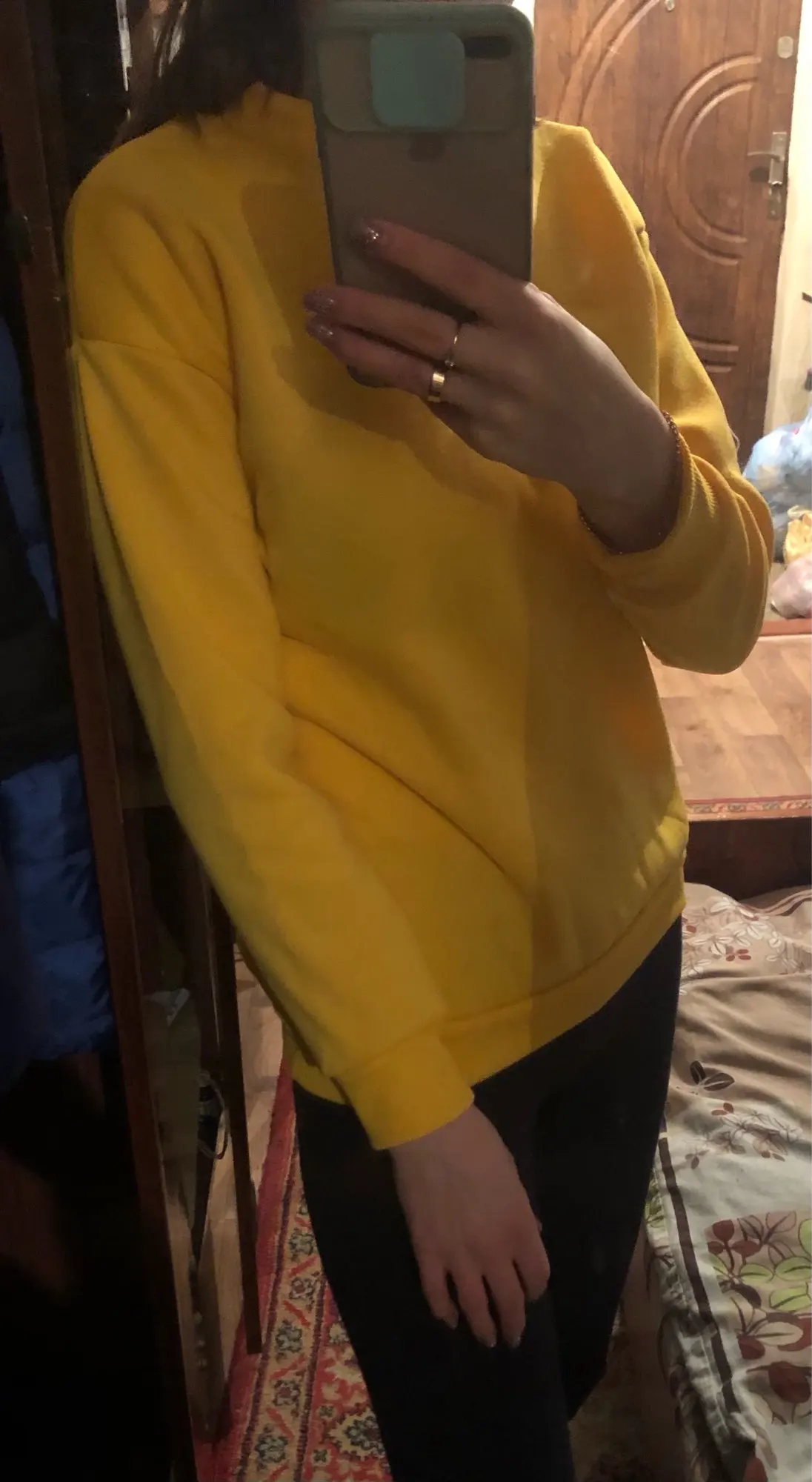 Суперская толстовка солнечного цвета. Ткань очень мягкая, с начёсом. Подошла на 42-44 российский размер. Только рукава коротковаты. Продавец честный - отправил с большой скидкой. Купила за 49р. Доставка очень быстрая - 2 недели. Получила на кассе "Пятёрочки". Продавца рекомендую!!!