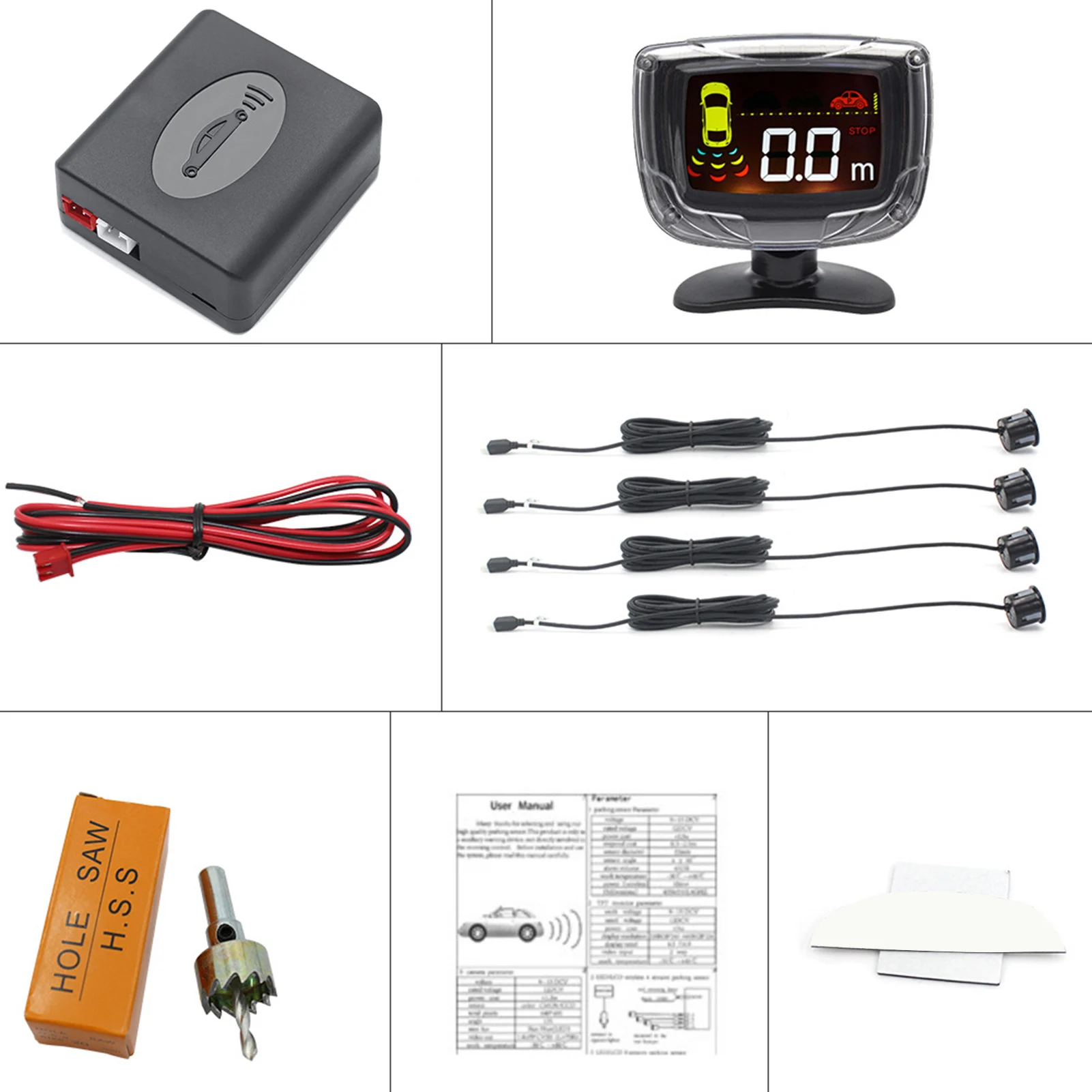 Автомобильный датчик парковки, автомобильный резервный датчик парковки, радарная система с 4 датчиками парковки, звуковое предупреждение, светодиодная подсветка