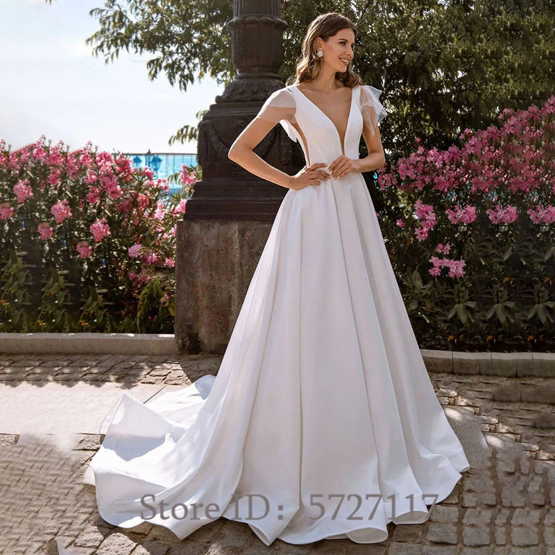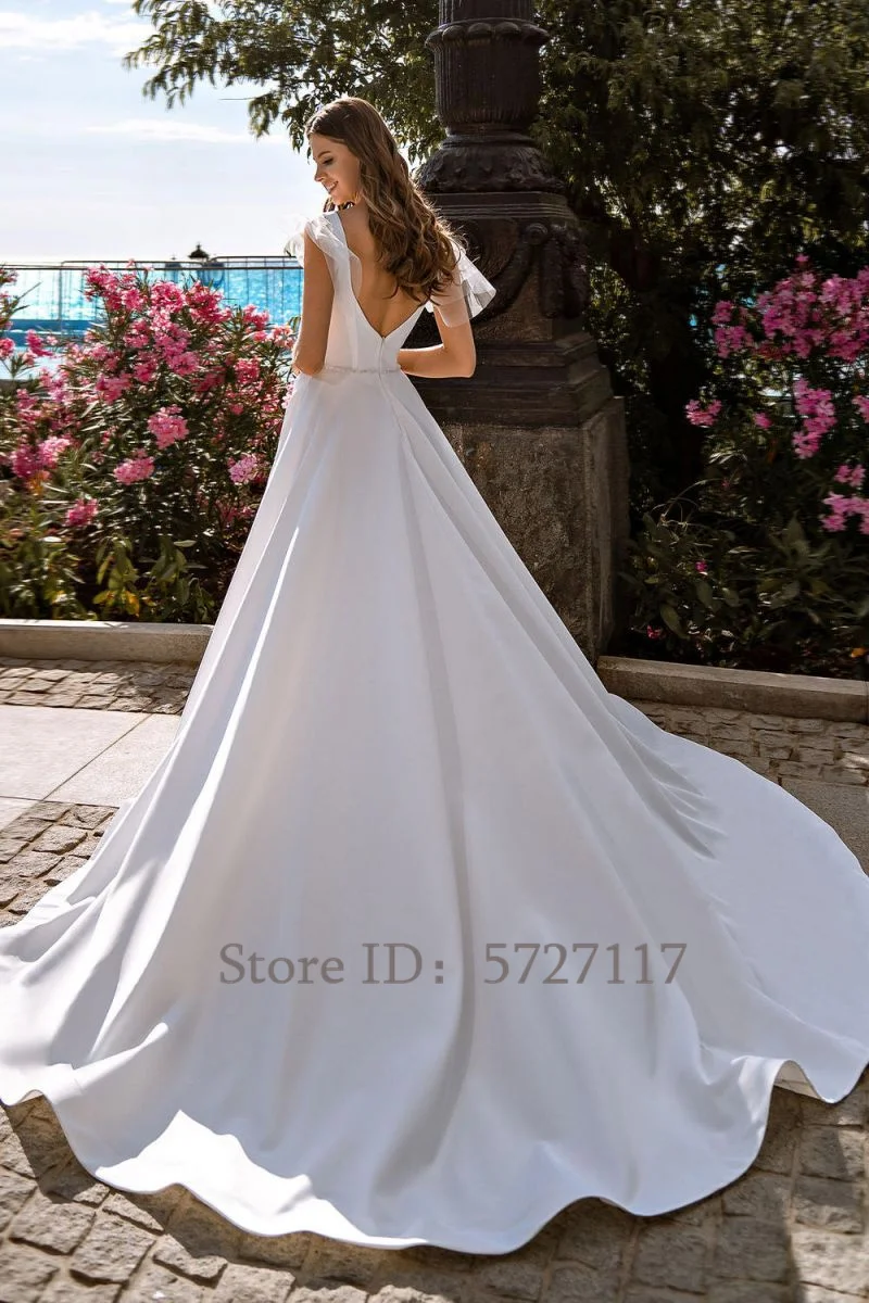Изящные Атласные Платья А-силуэта с V-образным вырезом для свадебной вечеринки с открытой спиной длинное винтажное свадебное платье принцессы на заказ